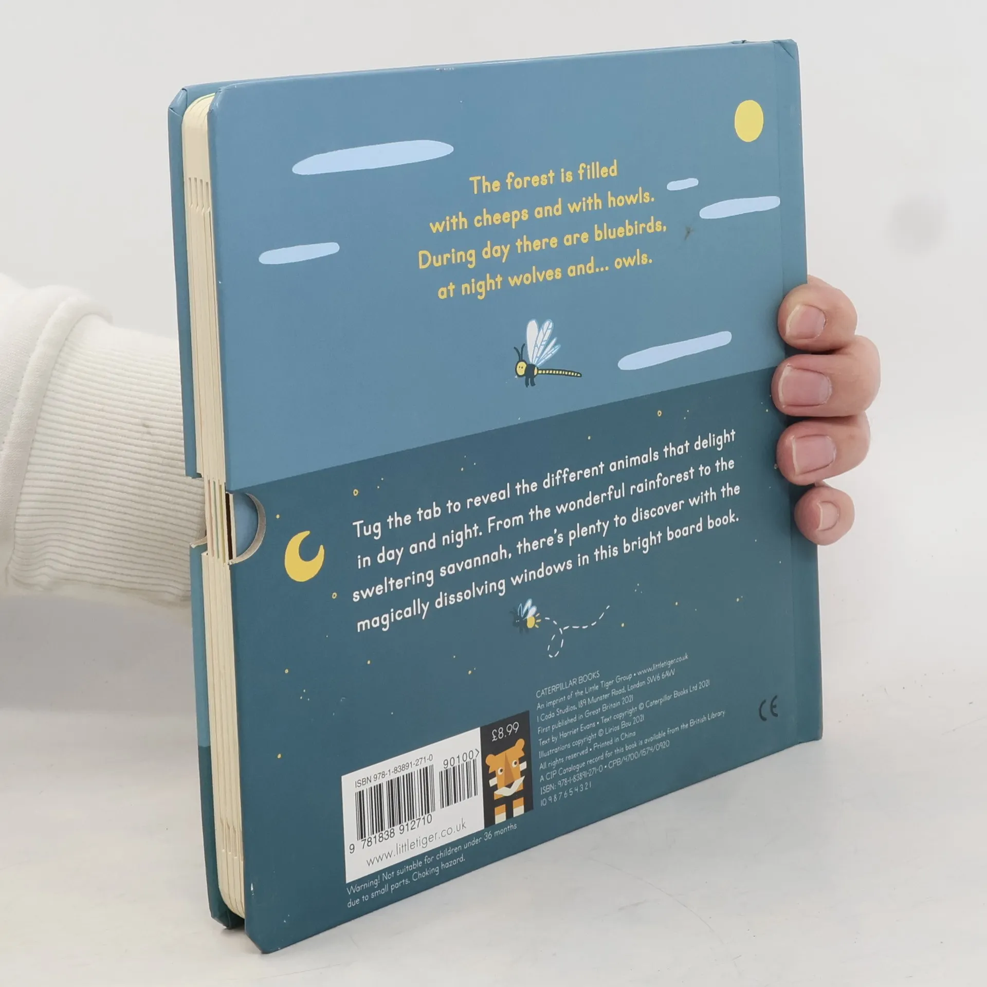 The forest is filledwith cheeps and with howls. During day there are bluebirds, at night wolves and... owls. Tug the tab to reveal the different animals that delight in day and night. From the wonderful rainforest to the sweltering savannah, there's plenty to discover with the magically dissolving windows in this bright board book.