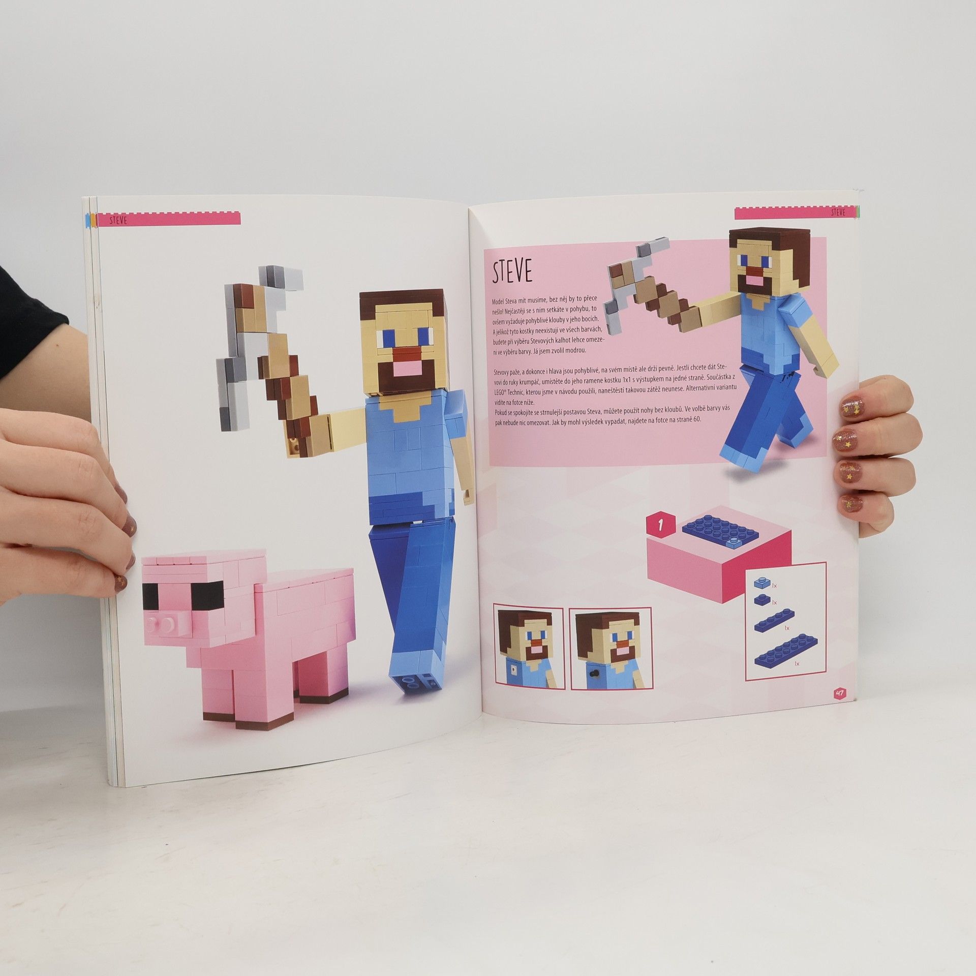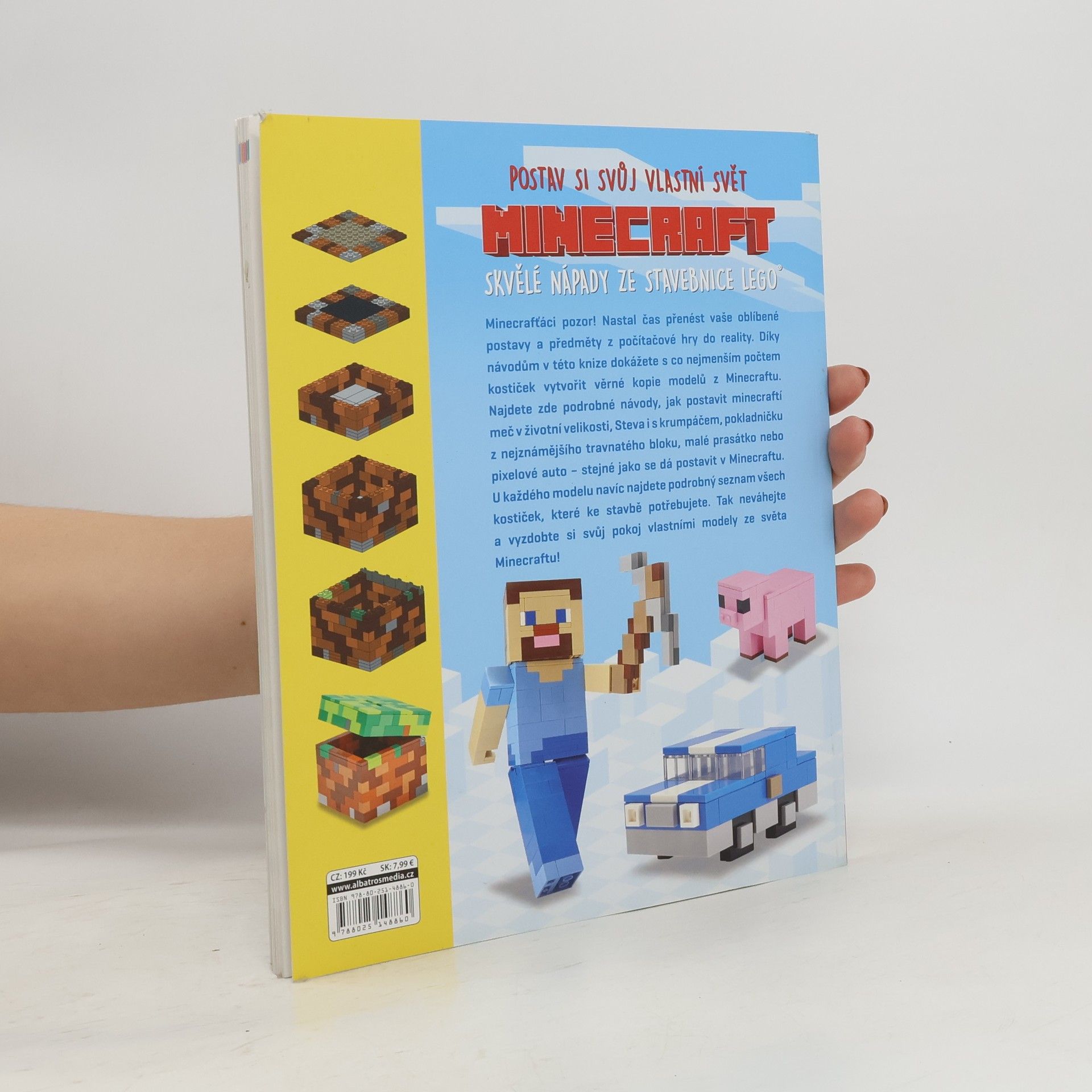 Minecrafťáci pozor! Nastal čas přenést vaše oblíbené postavy a předměty z počítačové hry do reality. Díky návodům v této knize dokážete s co nejmenším počtem kostiček vytvořit věrné kopie modelů z Minecraftu. Najdete zde podrobné návody, jak postavit minecraftí meč v životní velikosti, Steva i s krumpáčem, pokladničku z nejznámějšího travnatého bloku či malé prasátko.