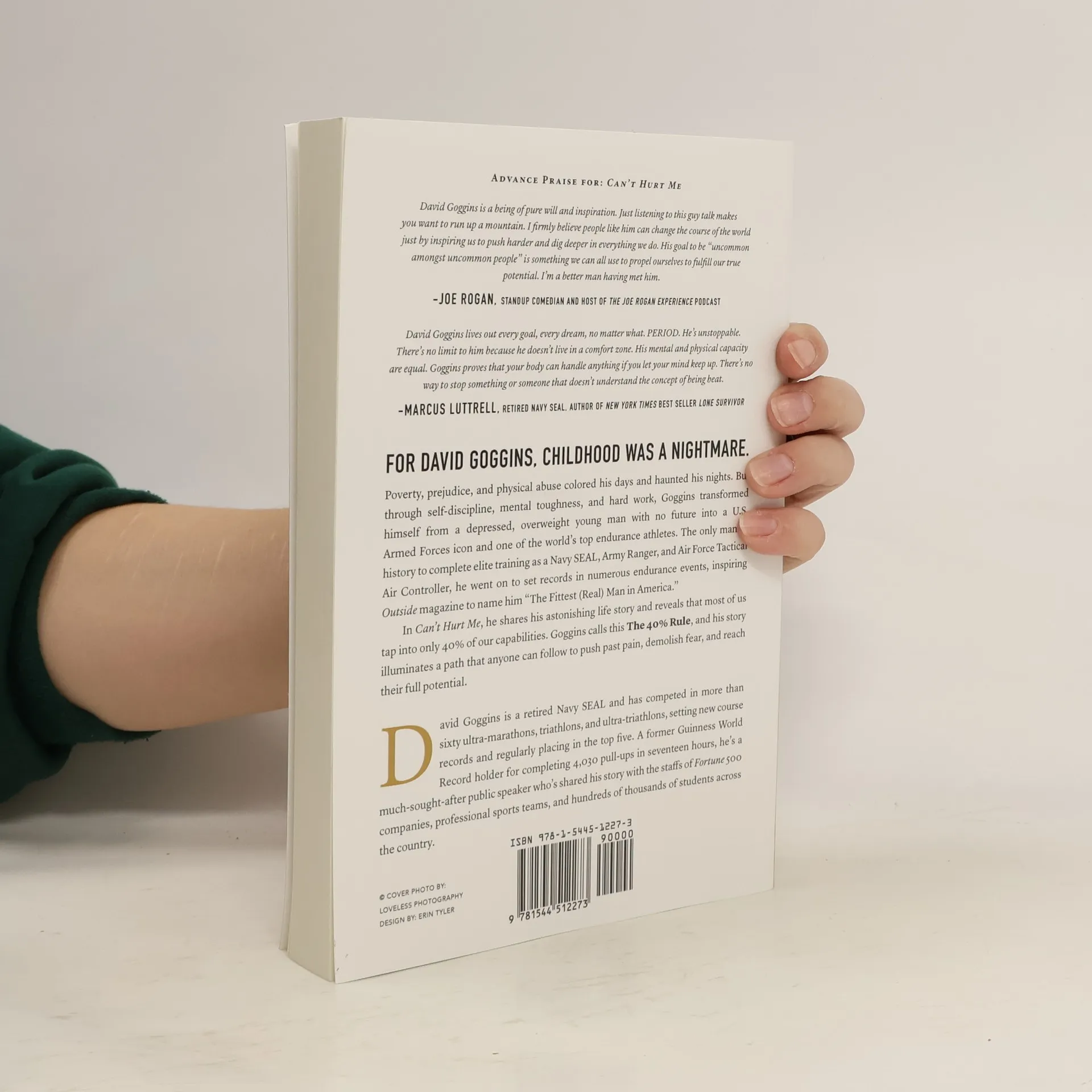 For David Goggins, childhood was a nightmare -- poverty, prejudice, and physical abuse colored his days and haunted his nights. But through self-discipline, mental toughness, and hard work, Goggins transformed himself from a depressed, overweight young man with no future into a U.S. Armed Forces icon and one of the world's top endurance athletes. The only man in history to complete elite training as a Navy SEAL, Army Ranger, and Air Force Tactical Air Controller, he went on to set records in numerous endurance events, inspiring Outside magazine to name him "The Fittest (Real) Man in America." In Can't Hurt Me, he shares his astonishing life story and reveals that most of us tap into only 40% of our capabilities. Goggins calls this The 40% Rule, and his story illuminates a path that anyone can follow to push past pain, demolish fear, and reach their full potential.