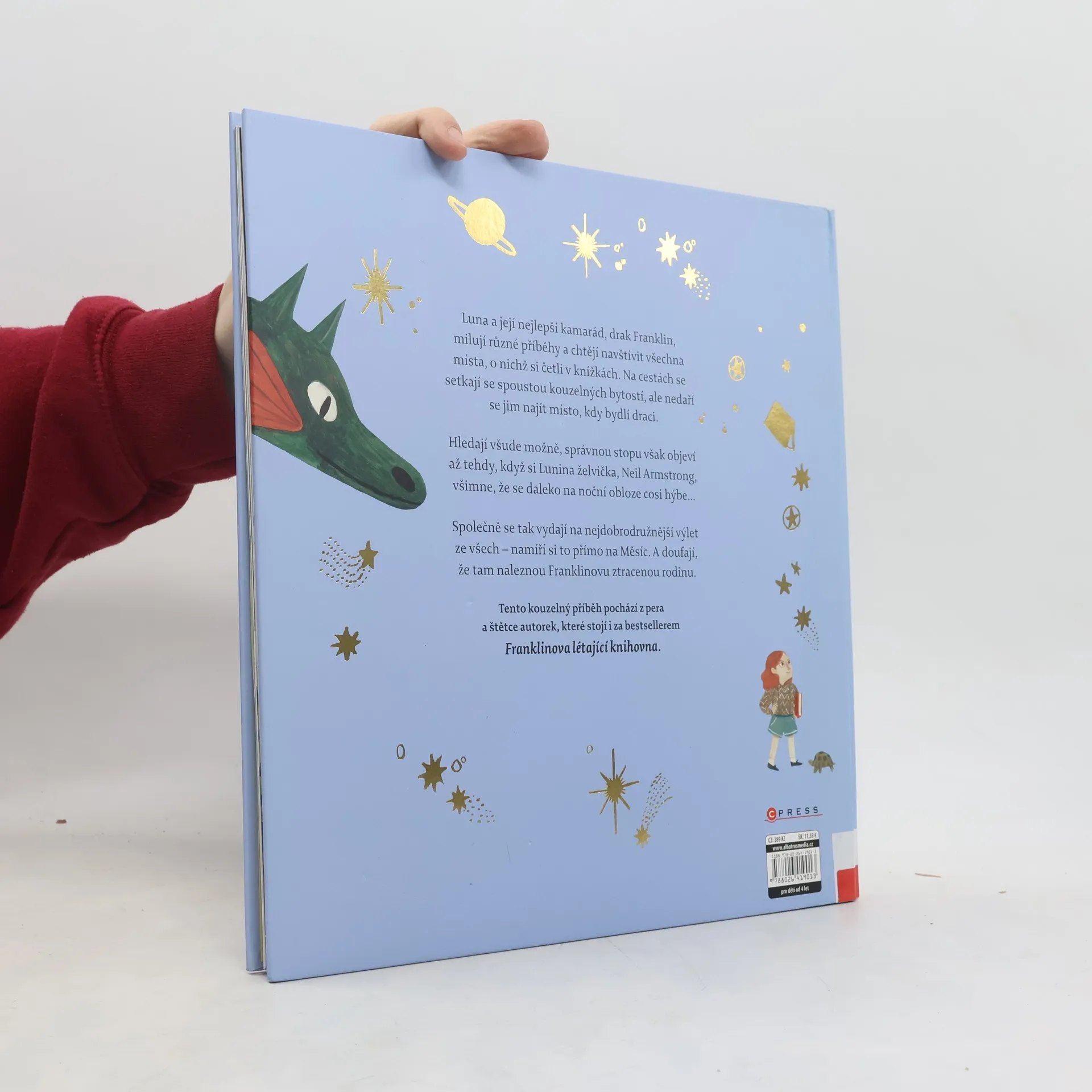 Luna a její nejlepší kamarád, drak Franklin, milují různé příběhy a chtějí navštívit místa, o nichž si četli v knížkách. Na cestách se setkají se spoustou kouzelných bytostí, ale nedaří se jim najít místo, kdy bydlí draci. Hledají všude možně, správnou stopu však objeví až tehdy, když si Lunina želvička, Neil Armstrong, všimne, že se na noční obloze cosi hýbe… Společně se tak vydají na nejdobrodružnější výlet ze všech – namíří si to přímo na měsíc. A doufají, že tam naleznou Franklinovu ztracenou rodinu.