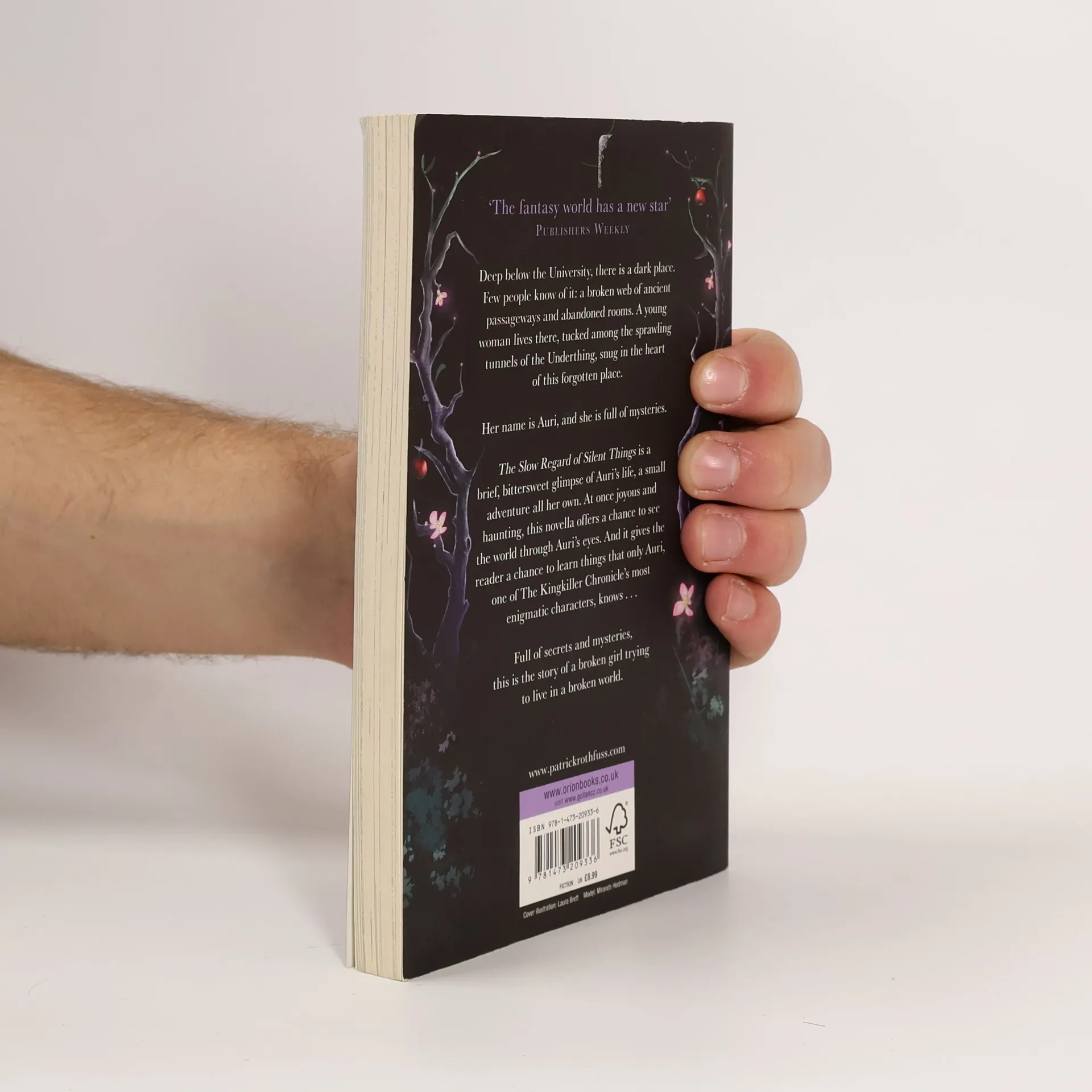Renowned as a bastion of knowledge, the University draws the brightest minds to unravel the mysteries of enlightened sciences, such as artificing and alchemy. Yet deep below its bustling halls lies a complex web of abandoned rooms and ancient passageways. In the heart of this cavernous maze is a young woman named Auri, who calls this Underthing her home. Formerly a student at the University, Auri now spends her days tending to the world around her. She knows that some mysteries are better settled and safe. No longer fooled by the sharp rationality so trusted by those above her, Auri sees beyond the surface of things, into subtle dangers and hidden names. At once joyous and haunting, The Slow Regard of Silent Things is a richly atmospheric and lyrical tale, featuring one of the most beloved characters from Rothfuss' acclaimed fantasy series.