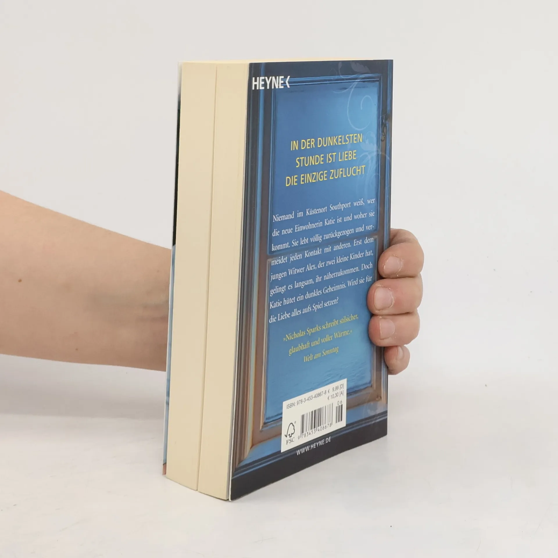 Niemand schreibt über die Liebe wie Nicholas Sparks Niemand im Küstenort Southport weiß, wer die neue Einwohnerin Katie ist und woher sie kommt. Sie lebt komplett zurückgezogen und vermeidet jeden Kontakt mit anderen. Erst dem jungen Witwer Alex, der zwei kleine Kinder hat, gelingt es langsam und behutsam, ihr näherzukommen. Doch Katie hütet ein dunkles Geheimnis. Wird sie für die Liebe alles aufs Spiel setzen?