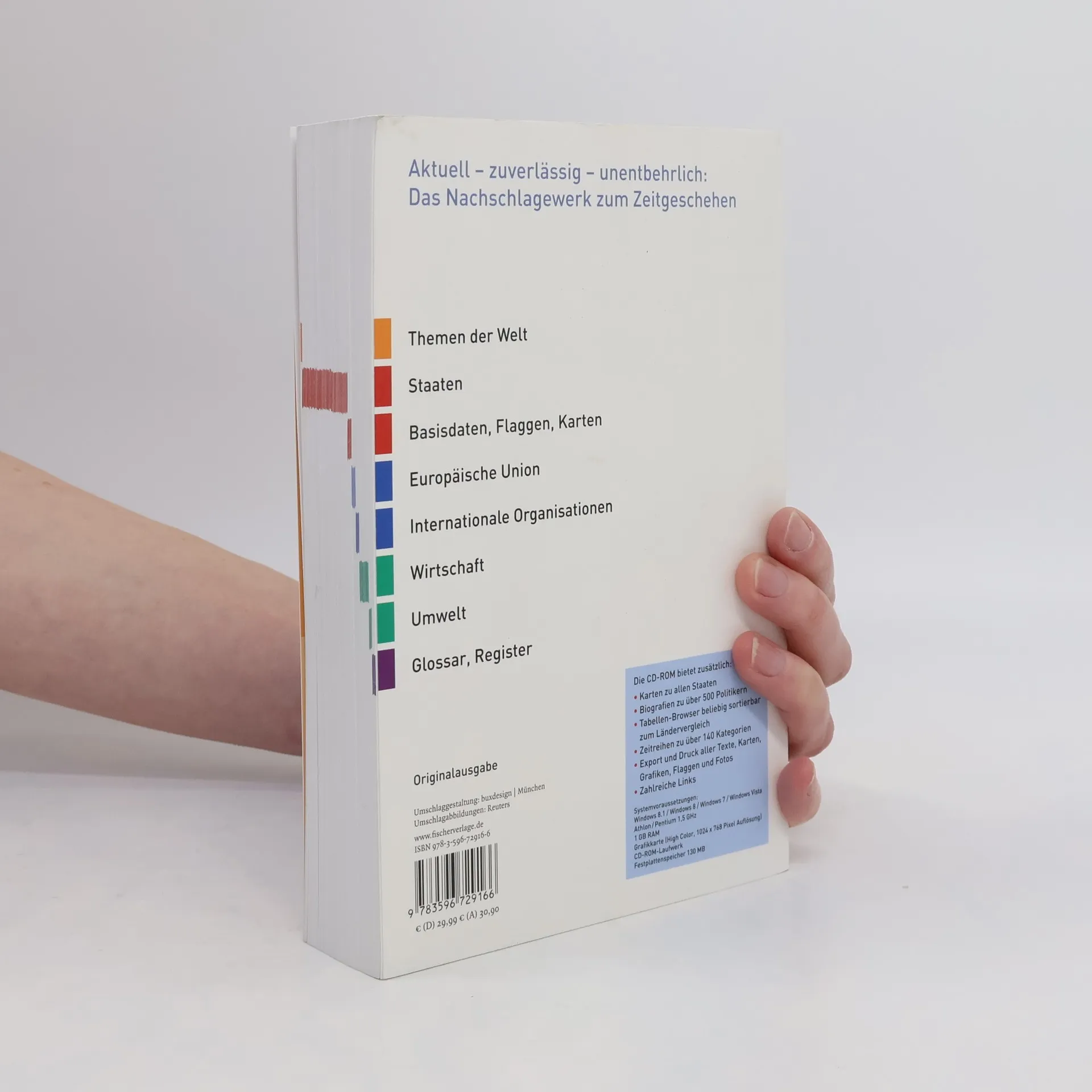 Der neue Fischer Weltalmanach 2016 mit CD-ROM bietet verlässliches Wissen zu politischen und wirtschaftlichen Entwicklungen des vergangenen Jahres. Informative Chroniken zu jedem Land der Welt sowie über 900 Karten, Grafiken, Tabellen und Fotos ermöglichen schnellen Zugang zu wichtigen Informationen. Das Schwerpunktthema 2016 ist Flüchtlinge, mit Beiträgen zu Flüchtlingslagern, Routen und aktueller Flüchtlingspolitik. Infokästen liefern Basiswissen und grundlegende Definitionen zu diesem Thema. Die CD-ROM erweitert den Almanach um zahlreiche Funktionen und über 100 zusätzliche Zeitreihen von 1960 bis 2014 zu Demografie, Wirtschaft und Umwelt. Alle Inhalte, einschließlich über 1.000 Karten und Grafiken, können ausgedruckt oder exportiert werden. Ein Tabellen-Browser ermöglicht schnelle Ländervergleiche, und Diagramme lassen sich leicht erstellen. Zudem sind über 500 Kurzbiografien bedeutender Persönlichkeiten aus Politik, Wirtschaft und Gesellschaft enthalten. Ein Zugangscode zur aktuellen Ausgabe ermöglicht den Zugriff auf ein Online-Portal, das täglich über Wahlergebnisse und Regierungswechsel informiert und mehr als 250.000 Daten für individuelle Recherchen bereitstellt. Systemvoraussetzungen umfassen Windows 8.1 / 8 / 7 / Vista und einen Athlon/Pentium-Prozessor mit 1 GHz sowie 1 GB RAM.