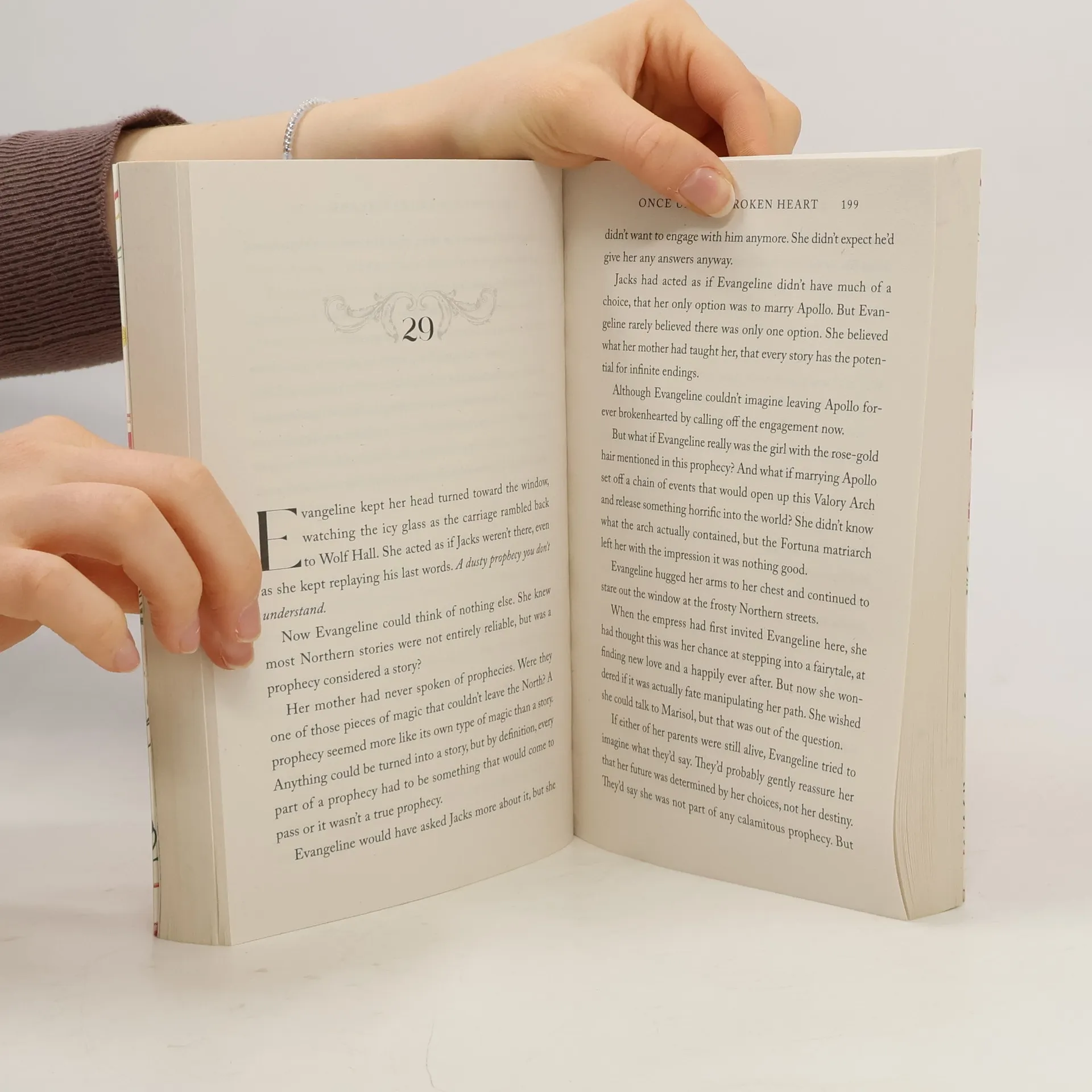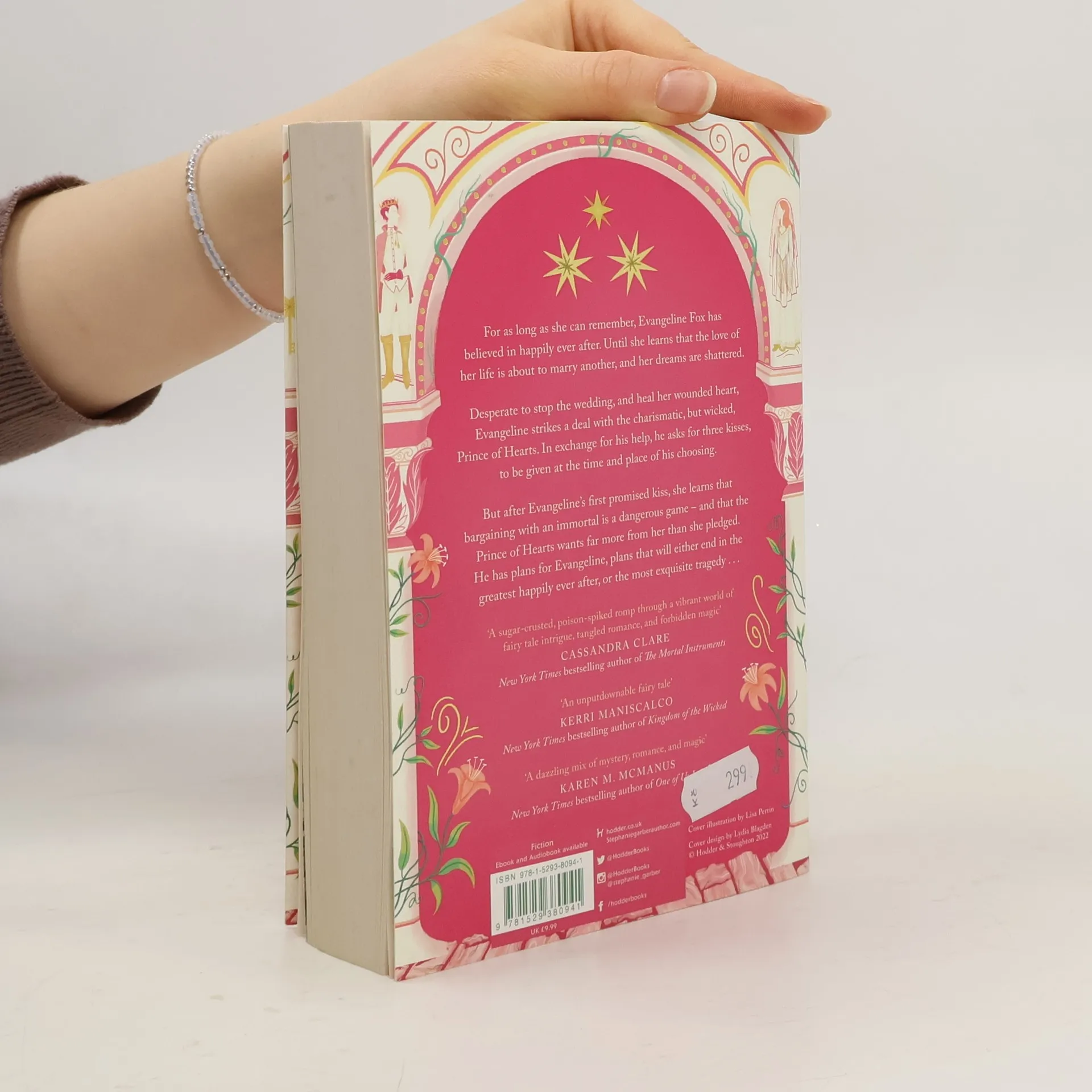 ONCE UPON A BROKEN HEART marks the launch of a new series from Stephanie Garber about love, curses, and the lengths that people will go to for happily ever after For as long as she can remember, Evangeline Fox has believed in true love and happy endings . . . until she learns that the love of her life will marry another. Desperate to stop the wedding and to heal her wounded heart, Evangeline strikes a deal with the charismatic, but wicked, Prince of Hearts. In exchange for his help, he asks for three kisses, to be given at the time and place of his choosing. But after Evangeline’s first promised kiss, she learns that bargaining with an immortal is a dangerous game — and that the Prince of Hearts wants far more from her than she’d pledged. He has plans for Evangeline, plans that will either end in the greatest happily ever after, or the most exquisite tragedy.