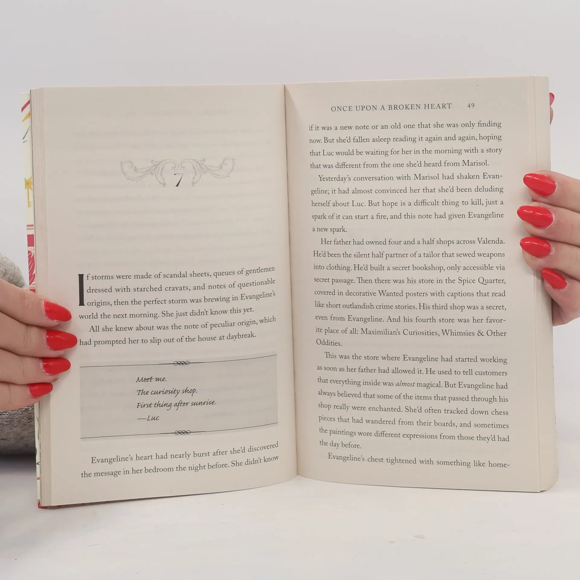 ONCE UPON A BROKEN HEART marks the launch of a new series from Stephanie Garber about love, curses, and the lengths that people will go to for happily ever after For as long as she can remember, Evangeline Fox has believed in true love and happy endings . . . until she learns that the love of her life will marry another. Desperate to stop the wedding and to heal her wounded heart, Evangeline strikes a deal with the charismatic, but wicked, Prince of Hearts. In exchange for his help, he asks for three kisses, to be given at the time and place of his choosing. But after Evangeline’s first promised kiss, she learns that bargaining with an immortal is a dangerous game — and that the Prince of Hearts wants far more from her than she’d pledged. He has plans for Evangeline, plans that will either end in the greatest happily ever after, or the most exquisite tragedy.