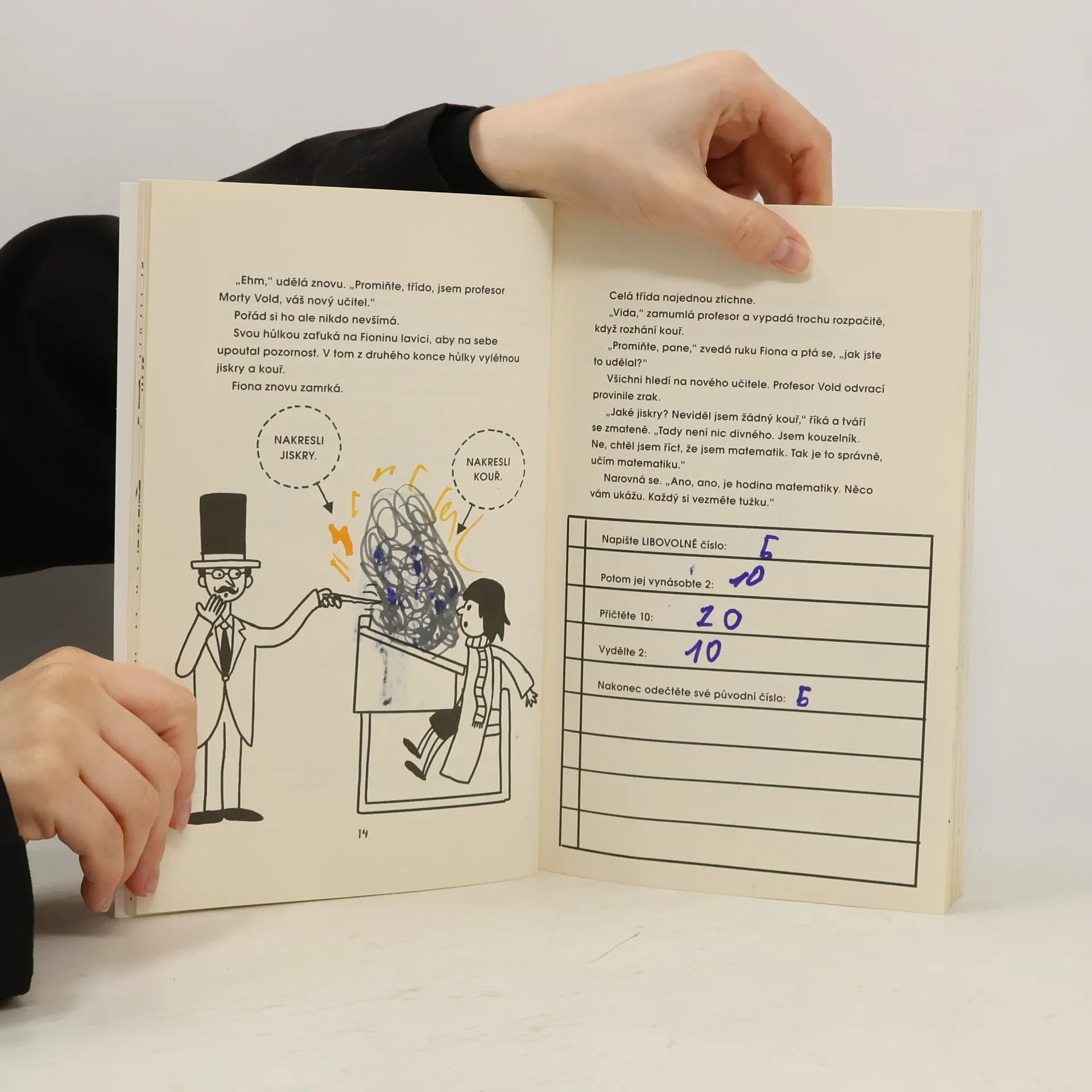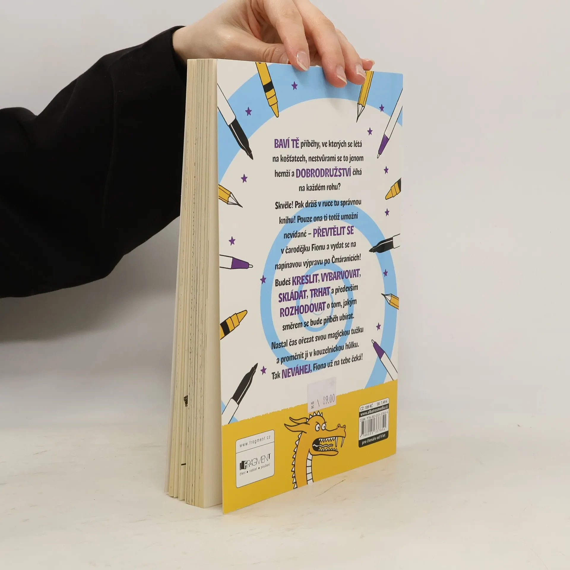 " Gamebook a zábavné aktivity v jednom! Proměň svoji tužku v kouzelnickou hůlku a dej se do toho! "Baví tě příběhy, ve kterých se létá na košťatech, nestvůrami se to jen hemží a dobrodružství číhá na každém rohu? Skvěle! Pak držíš v ruce tu správnou knihu! Pouze ona ti totiž umožní převtělit se v čarodějku Fionu a vydat se na napínavou výpravu po Čmáranicích! Budeš kreslit, vybarvovat, skládat, trhat a především rozhodovat o tom, jakým směrem se bude příběh ubírat. Ořež svou magickou tužku a proměň ji v kouzelnickou hůlku. Fiona už na tebe čeká!