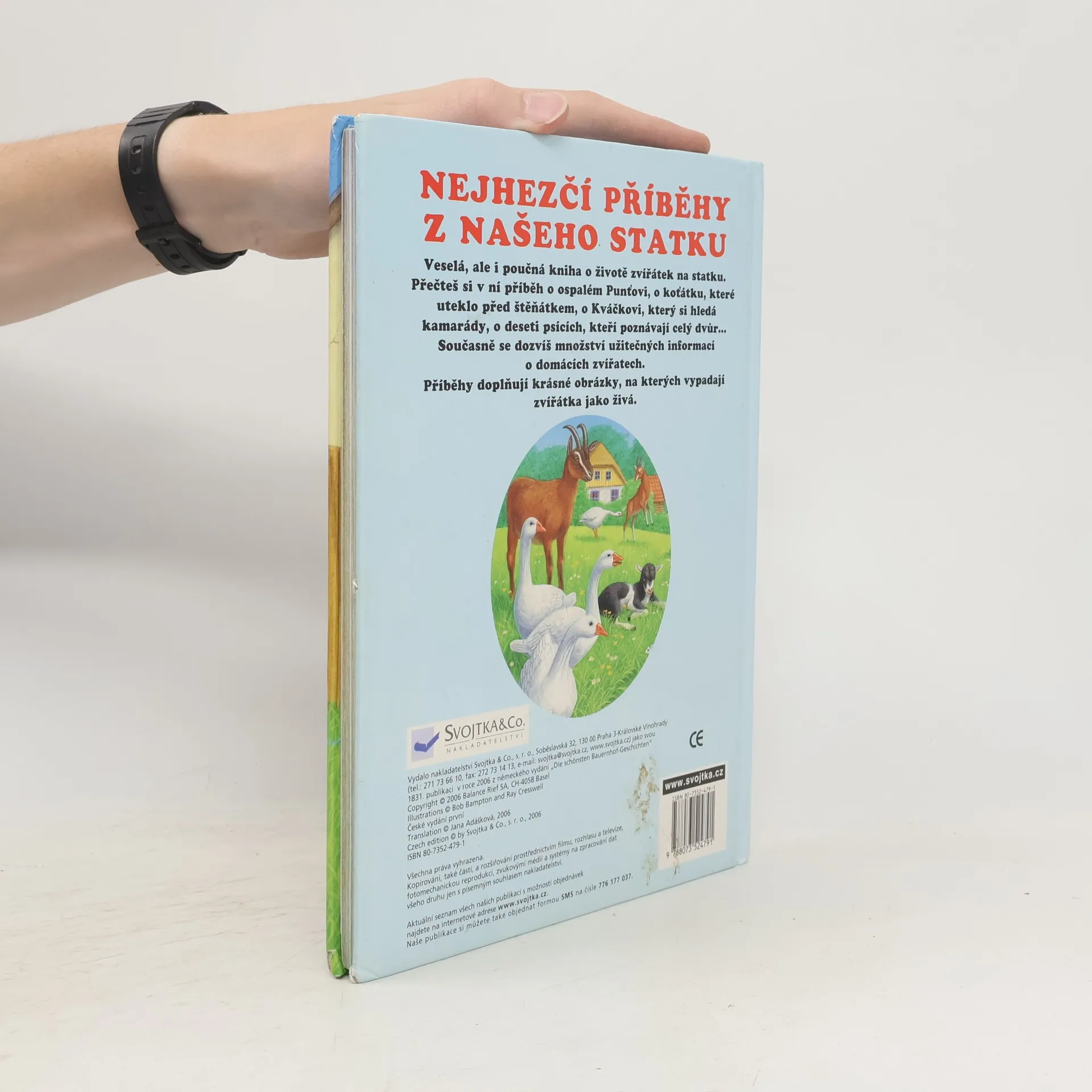 Tato kniha je veselá i poučná a seznámí nás se životem zvířátek na statku. Přečtete si v ní příběh o ospalém Punťovi, o koťátku, které uteklo před štěňátkem, o Kváčkovi, který si hledá kamarády, o deseti psících, kteří poznávají celý dvůr… Současně se dozvíte množství užitečných informací o domácích zvířatech. Příběhy doplňují krásné obrázky, na kterých vypadají zvířátka jako živá.