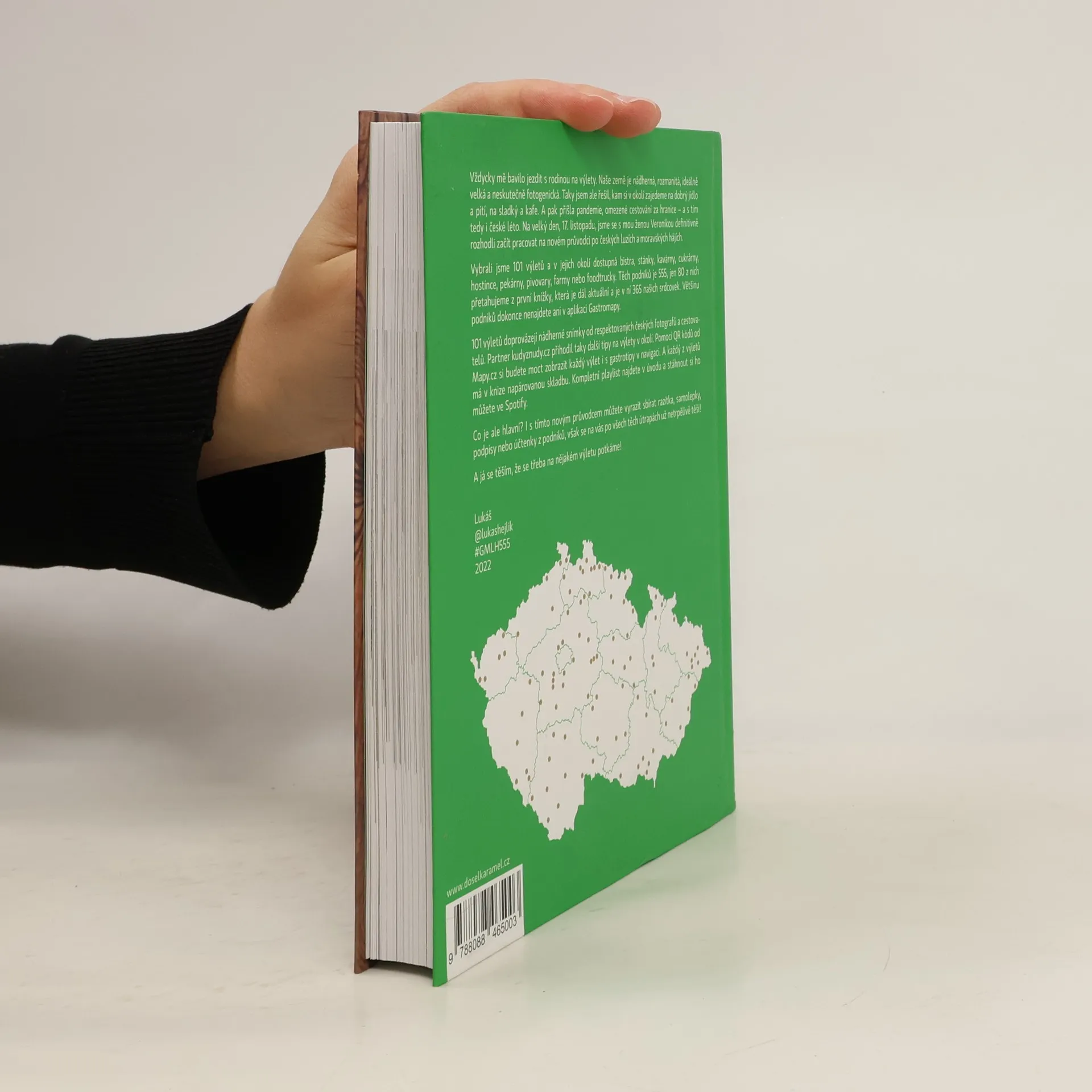 Autor v knize 555 – Výlety s Gastromapou Lukáše Hejlíka vyráží na 100 nádherných míst po celé České republice a mapuje v jejich okolí dostupné podniky, kam můžete zajít na fajn jídlo, kafe, sladký, pivo nebo třeba večerní drink. A co všechno kromě 555 gastrotipů pro vás Lukáš vysype ze svého cestovatelského báglu? Každý výlet popíše a vždy ho doprovodí fotografií od respektovaných českých fotografů a cestovatelů. Partner Kudyznudy.cz přihodí další možnosti, kam se v dané lokalitě podívat. Pomocí QR kódu Mapy.cz si budete moct stáhnout celý výlet i Lukášovy tipy do navigace. A mimochodem, každý z výletů bude mít v knize napárovanou skladbu, kterou lze načíst v aplikaci Spotify. A co je hlavní? I s novou knihou můžete vyrazit sbírat razítka ze svých návštěv, však všechny ty skvělé podniky se na vás už netrpělivě těší! Gastroturistika může začít!