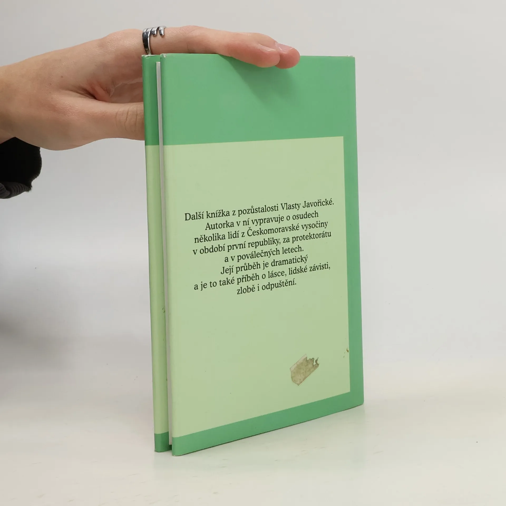 Autorka v knize vypravuje o osudech několika lidí z Českomoravské vysočiny v období první republiky, za protektorátu a v poválečných letech. Její průběh je dramatický a je to také příběh o lásce, lidské závisti, zlobě i odpuštění.