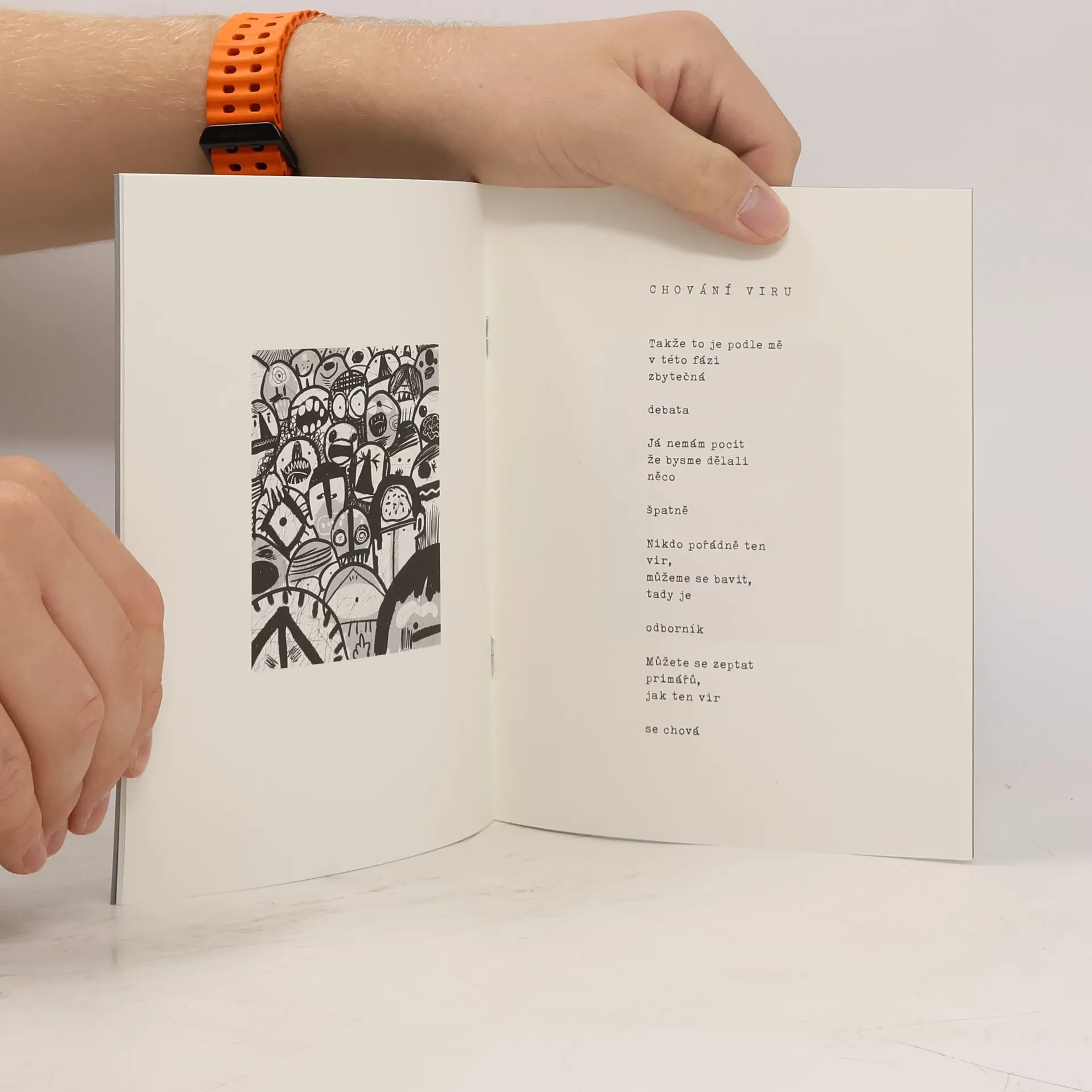 Jádrem sbírky je pásmo sedmi básní nazvané PROJEV. Jde o doslovný přepis premiérova vystoupení na tiskové konferenci v první polovině října 2020. Dali jsme si záležet na tom, že projev je zachycen s naprostou autenticitou, slovo od slova. Nic není doplněno a nic není vynecháno. PROJEV jsme doplnili výběrem textů z autorovy rané tvorby. Nemohli jsme čtenáře ochudit o legendární Motýle a další básně. Celá sbírka je citlivě a s láskou graficky zpracována a doplněna autorskými ilustracemi ve stylu art brut.