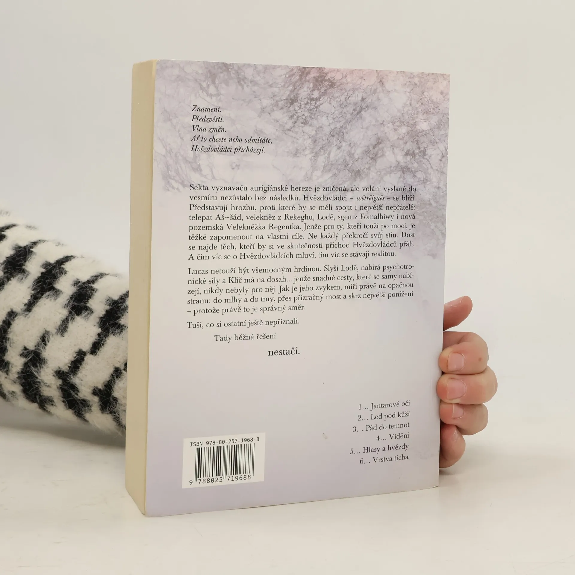Sekta vyznavačů aurigiánské hereze je zničená, ale volání, vyslané do vesmíru, nezůstalo bez následků. Hvězdovládci – wëtrëigaës – se blíží. Představují hrozbu, proti které by se měli spojit i největší nepřátelé: telepat Aš~šád, velekněz z Rekeghu, Lodě, sgen z Fomalhiwy i nová pozemská Velekněžka Regentka. Jenže pro ty, kteří touží po moci, je těžké zapomenout na vlastní cíle. Ne každý překročí svůj stín. Dost se najde těch, kteří by si ve skutečnosti příchod Hvězdovládců přáli. A čím víc se o Hvězdovládcích mluví, tím víc se stávají realitou. Lucas netouží být všemocným hrdinou. Slyší Lodě, nabírá psychotronické síly a Klíč má na dosah... jenže snadné cesty, které se samy nabízejí, nikdy nebyly pro něj. Jak je jeho zvykem, míří právě na opačnou stranu: do mlhy a do tmy, přes přízračný most a skrz největší ponížení – protože právě to je správný směr. Tam ho volá räwë, Hlasy a hvězdy.
