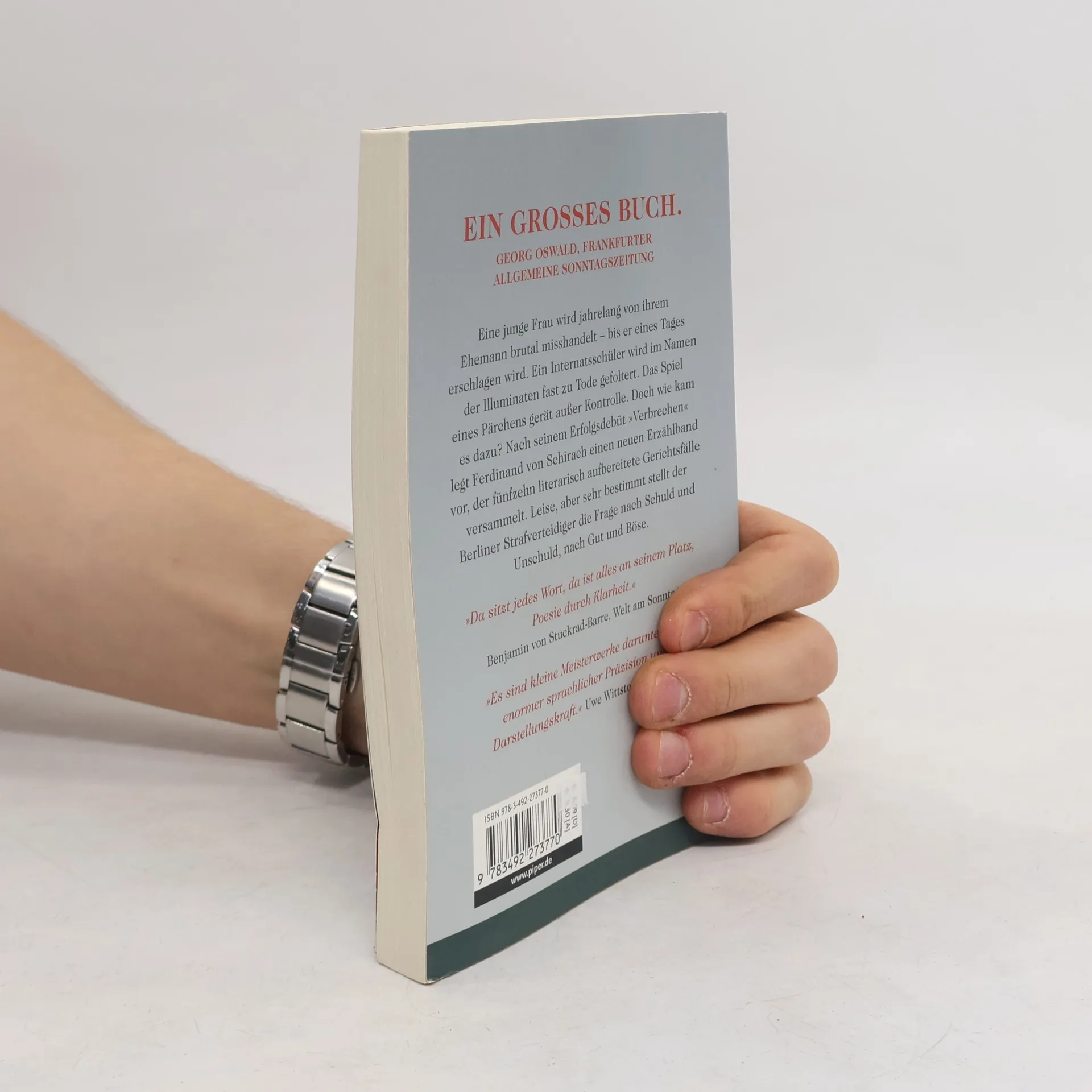 Eine junge Frau wird jahrelang von ihrem Ehemann brutal misshandelt – bis er eines Tages erschlagen wird. Ein Internatsschüler wird im Namen der Illuminaten fast zu Tode gefoltert. Das Spiel eines Pärchens gerät außer Kontrolle. Doch wie kam es dazu? Nach seinem Erfolgsdebüt »Verbrechen« legt Ferdinand von Schirach einen neuen Erzählband vor, der 15 literarisch aufbereitete Gerichtsfälle versammelt. Leise, aber sehr bestimmt stellt der Berliner Strafverteidiger die Frage nach Schuld und Unschuld, nach Gut und Böse.