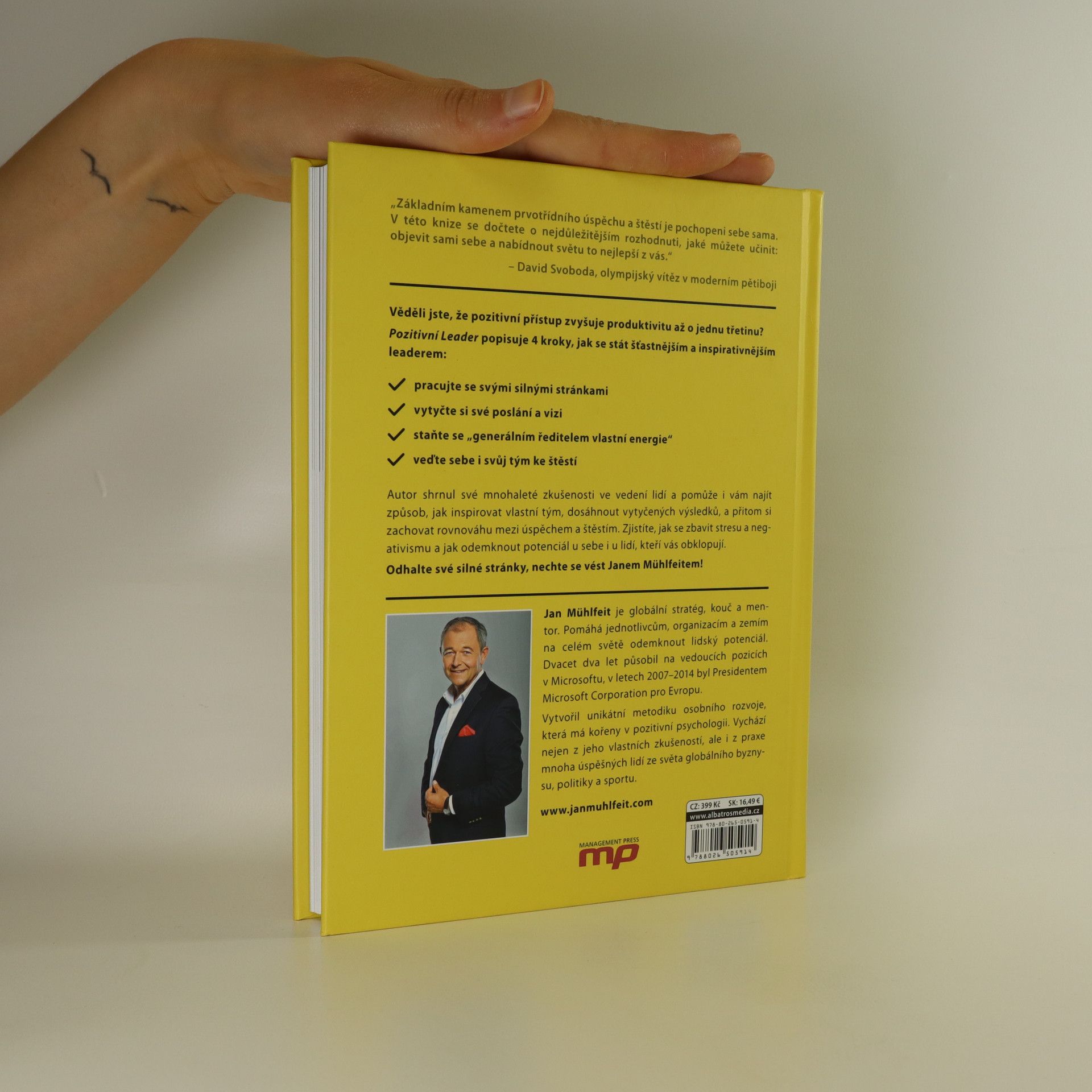 Autor, bývalý prezident evropského Microsoftu, shrnul do knihy své mnohaleté zkušenosti ve vedení lidí. Pomůže vám najít způsob, jak inspirovat vlastní tým, dosáhnout vytyčených výsledků, a přitom si zachovat rovnováhu mezi úspěchem a štěstím. Zjistíte, jak se zbavit stresu a negativismu a odemknout potenciál u sebe i u lidí, kteří vás obklopují. Odhalte své silné stránky, nechte se vést Janem Mühlfeitem!