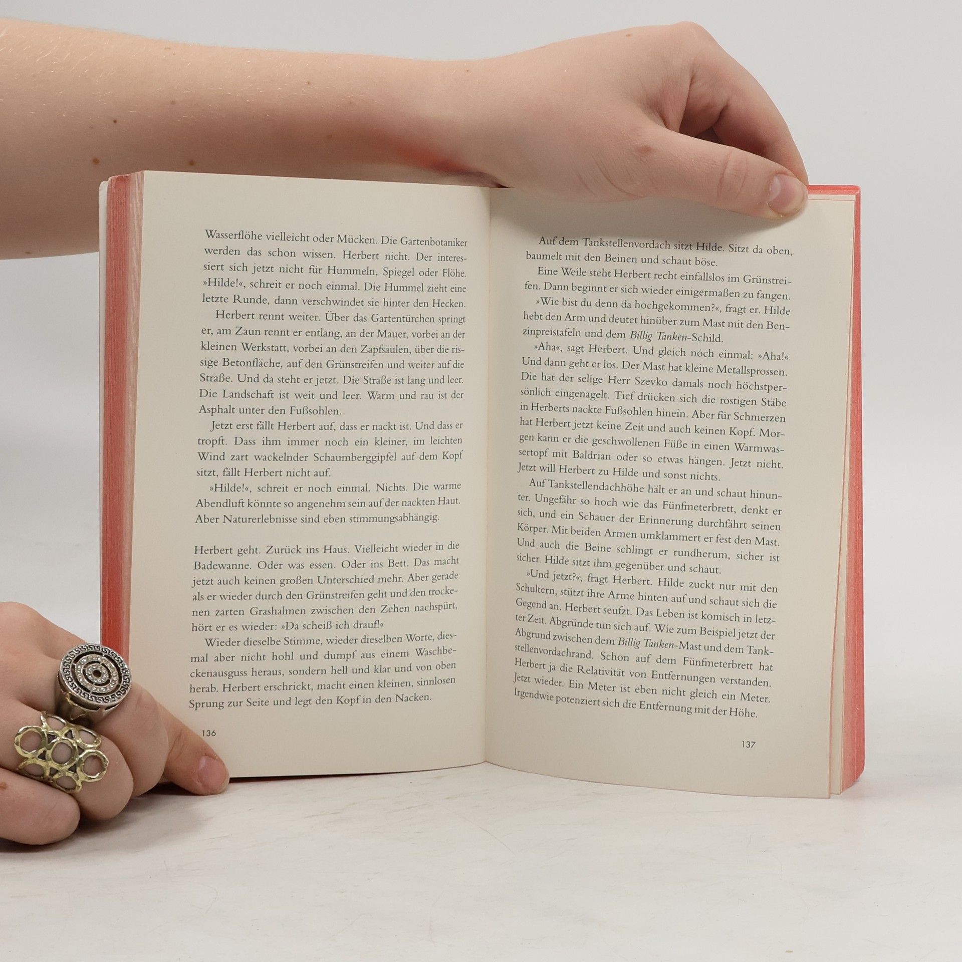 Inmitten der Provinzleere führt Herbert Szevko eine alte Tankstelle – gemeinsam mit seiner resoluten Mutter und unter Beobachtung des kleinen Zierfisches Georg. Eines Tages taucht im Hitzeflimmern der Straße eine lebenshungrige junge Frau auf. Sie heißt Hilde, spricht wenig, hat eine Stelle als Putzfrau im dörflichen Hallenbad und lächelt sich in Herberts Herz. Das Leben auf der Tankstelle und der dörfliche Alltag geraten aus den Fugen, und Herbert stürzt sich in einen verrückten Wirbel aus Stolz, Verzweiflung und etwas ihm bisher völlig Unbekanntem: Liebe.