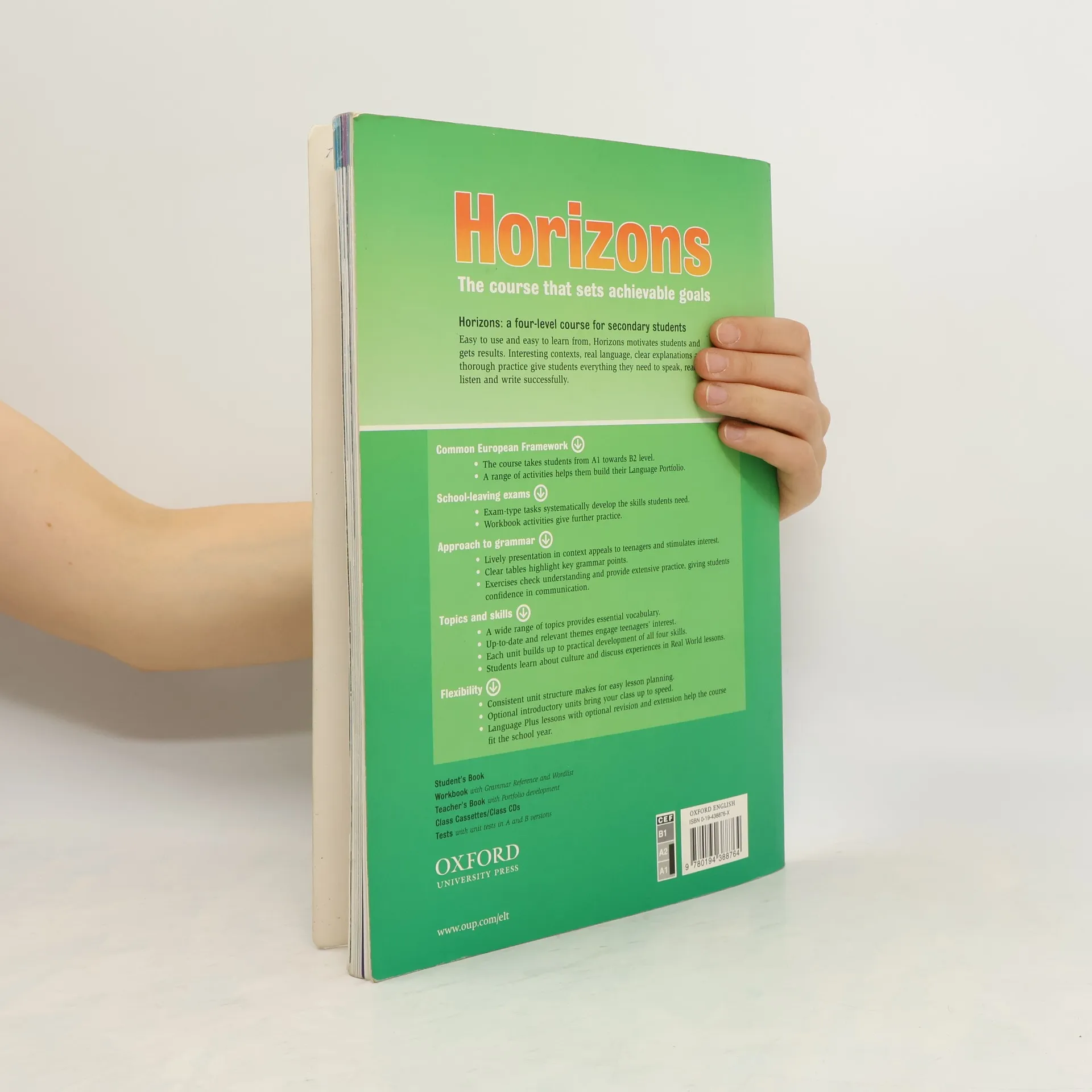 Multiple entry points cater for different teaching situations. Optional Starter unit for real beginners (level 1) or mixed classes (all levels) to revise basics. Horizons can be completed in a typical school-year. Grammar is presented in the context of dialogues, and practised systematically. Training for pre-intermediate and intermediate level exams. Optional lessons with extra language practice. Cultural sections focusing on various aspects of life in different countries.