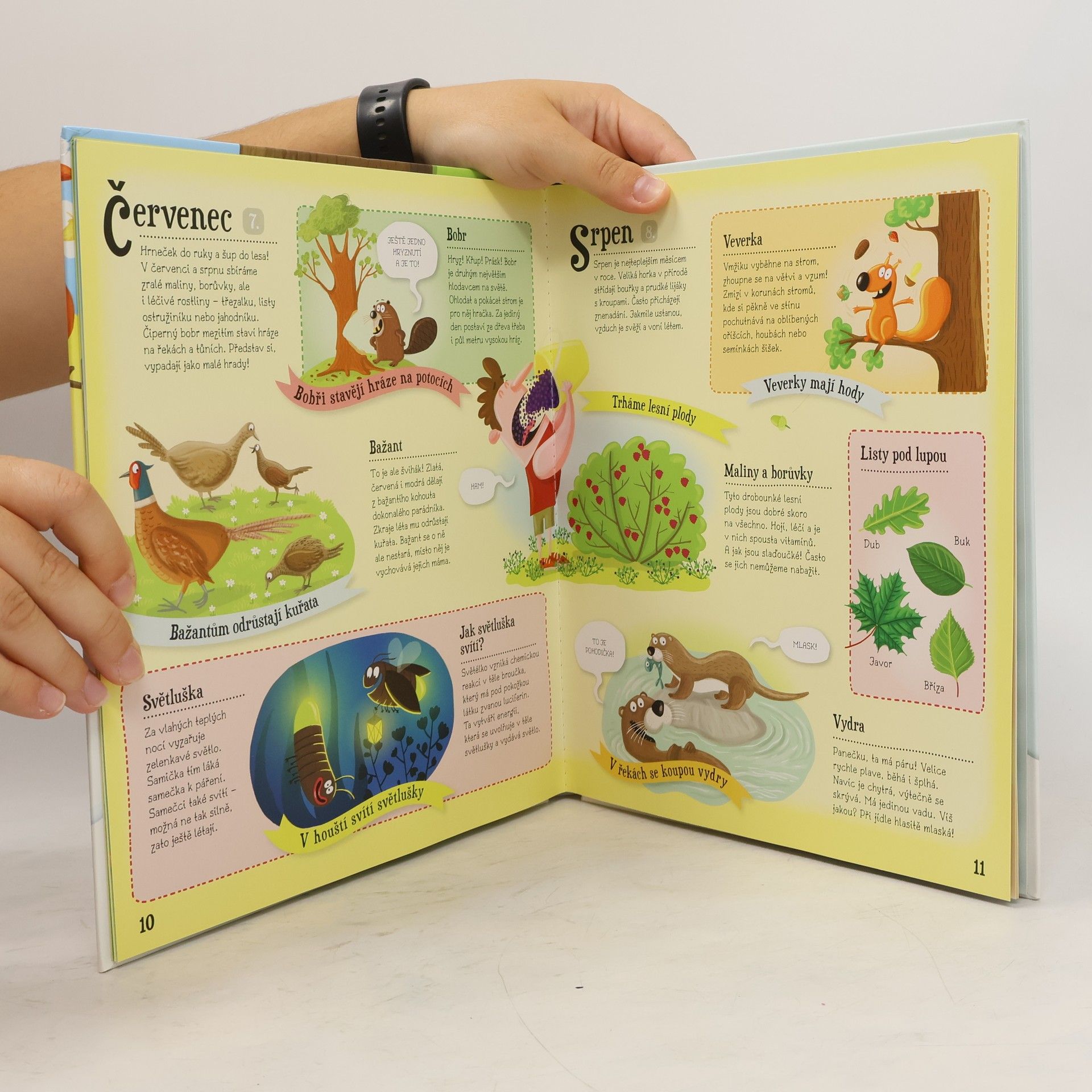 Bum! Bác! Ze stromů padají žaludy. Nebo že by to byly šišky? No jasně! Shodila je veverka, skočila ze stromu na strom a schovala se ve větvích. Uličnice! Zajdi se podívat za roztomilou akrobatkou i za jejími kamarády do lesa! Otevři knihu a zjisti, kdy co roste, jak se chovají zvířata, kdo je jedním z nejtajemnějších obyvatel lesů a skal, co dělá kuna po setmění nebo proč hadi vyplazují jazyk. Naučíš se rozlišovat zvířecí stopy a vyrobíš si svůj první herbář. Tak vzhůru do lesa za dobrodružstvím!