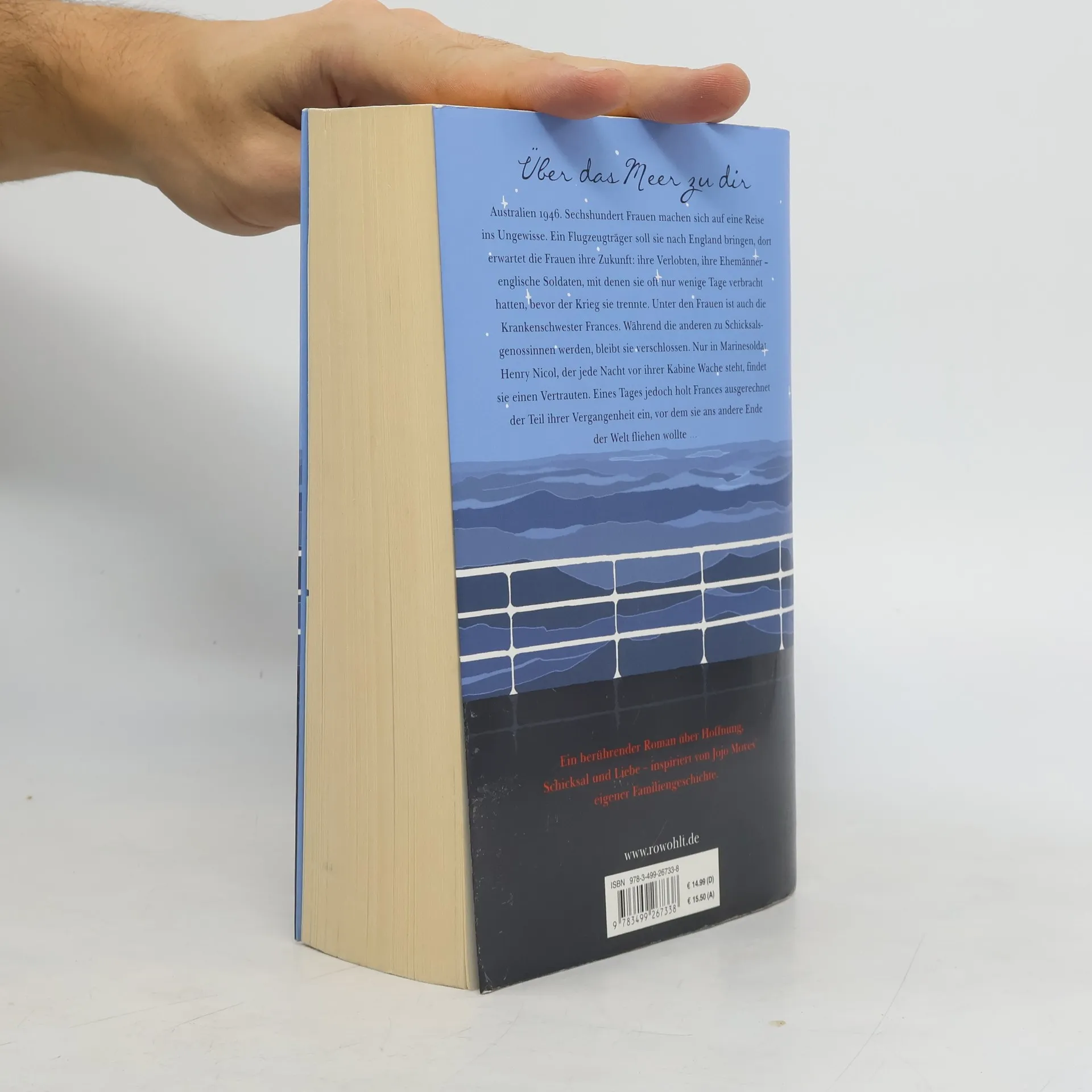 Ein berührender Roman über Hoffnung, Schicksal und Liebe – inspiriert von Jojo Moyes’ eigener Familiengeschichte. Australien 1946. Sechshundert Frauen machen sich auf eine Reise ins Ungewisse. Ein Flugzeugträger soll sie nach England bringen, dort erwartet die Frauen ihre Zukunft: ihre Verlobten, ihre Ehemänner – englische Soldaten, mit denen sie oft nur wenige Tage verbracht hatten, bevor der Krieg sie wieder trennte. Unter den Frauen ist auch die Krankenschwester Frances. Während die anderen zu Schicksalsgenossinnen werden, ihre Hoffnungen und Ängste miteinander teilen, bleibt sie verschlossen. Nur in Marinesoldat Henry Nicol, der jede Nacht vor ihrer Kabine Wache steht und wie sie Schreckliches erlebt hat im Krieg, findet sie einen Vertrauten. Eines Tages jedoch holt Frances ausgerechnet der Teil ihrer Vergangenheit ein, vor dem sie ans andere Ende der Welt fliehen wollte … Jeder von Jojo Moyes‘ Romanen eroberte die Spitze der Bestsellerliste. Ihre besondere Mischung aus Leichtigkeit und Tiefe, aus Humor und Dramatik begeistert weltweit Millionen Leser: innen.