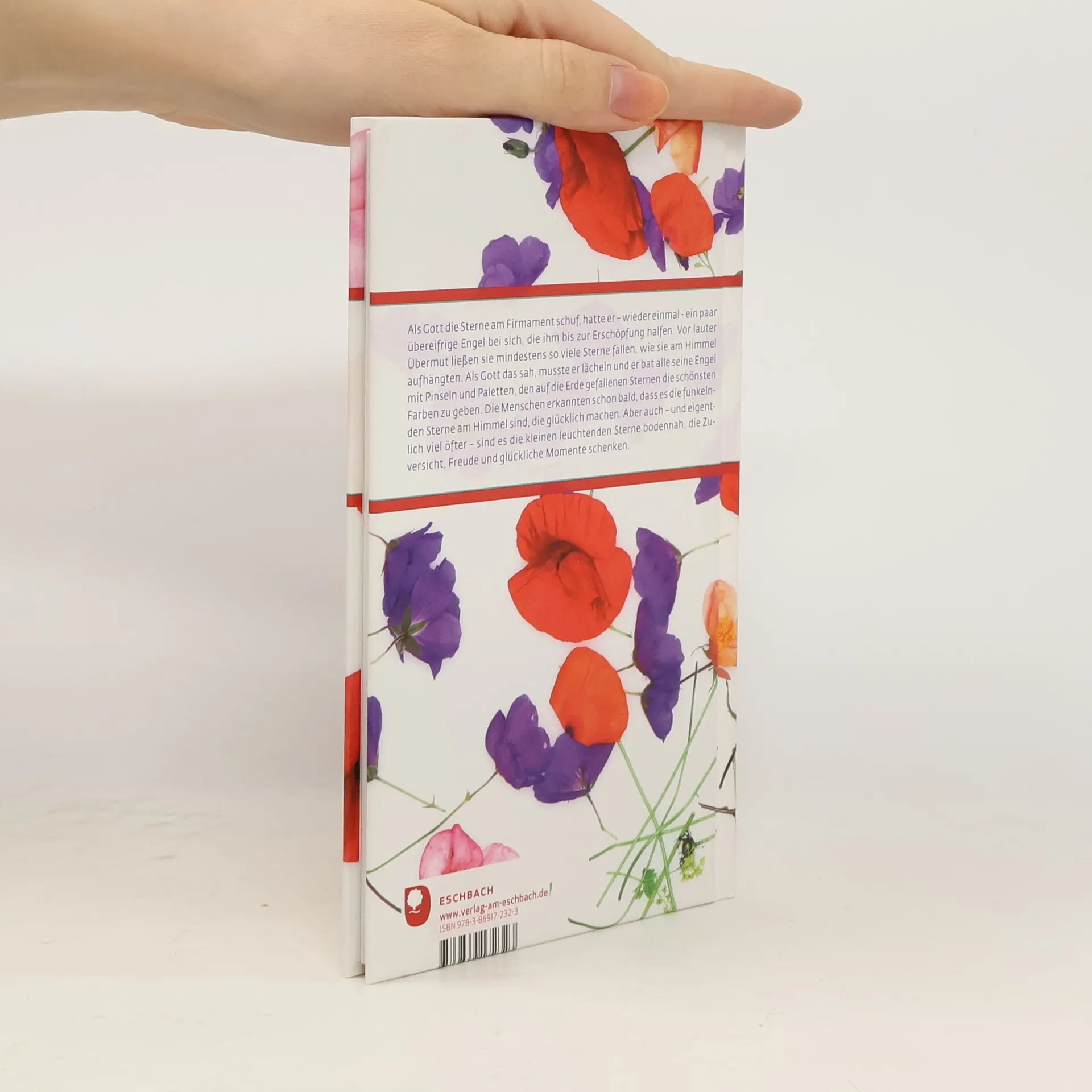 Als Gott die Sterne am Firmament schuf, hatte er wieder einmal ein paar übereifrige Engel bei sich, die ihm bis zur Erschöpfung halfen. Vor lauter Übermut ließen sie mindestens so viele Sterne fallen, wie sie am Himmel aufhängten. Als Gott das sah, musste er lächeln und ihm kam wie so oft eine Idee: er bat alle seine Engel mit Pinseln und Paletten, den auf die Erde gefallenen Sternen die schönsten Farben zu geben. Später, als dann die Menschen auf die Erde kamen, erkannten sie schon bald, dass es die funkelnden Sterne am Himmel sind, die glücklich machen. Aber auch und eigentlich viel öfter sind es die kleinen leuchtenden Sterne bodennah, die Zuversicht, Freude und glückliche Momente schenken.