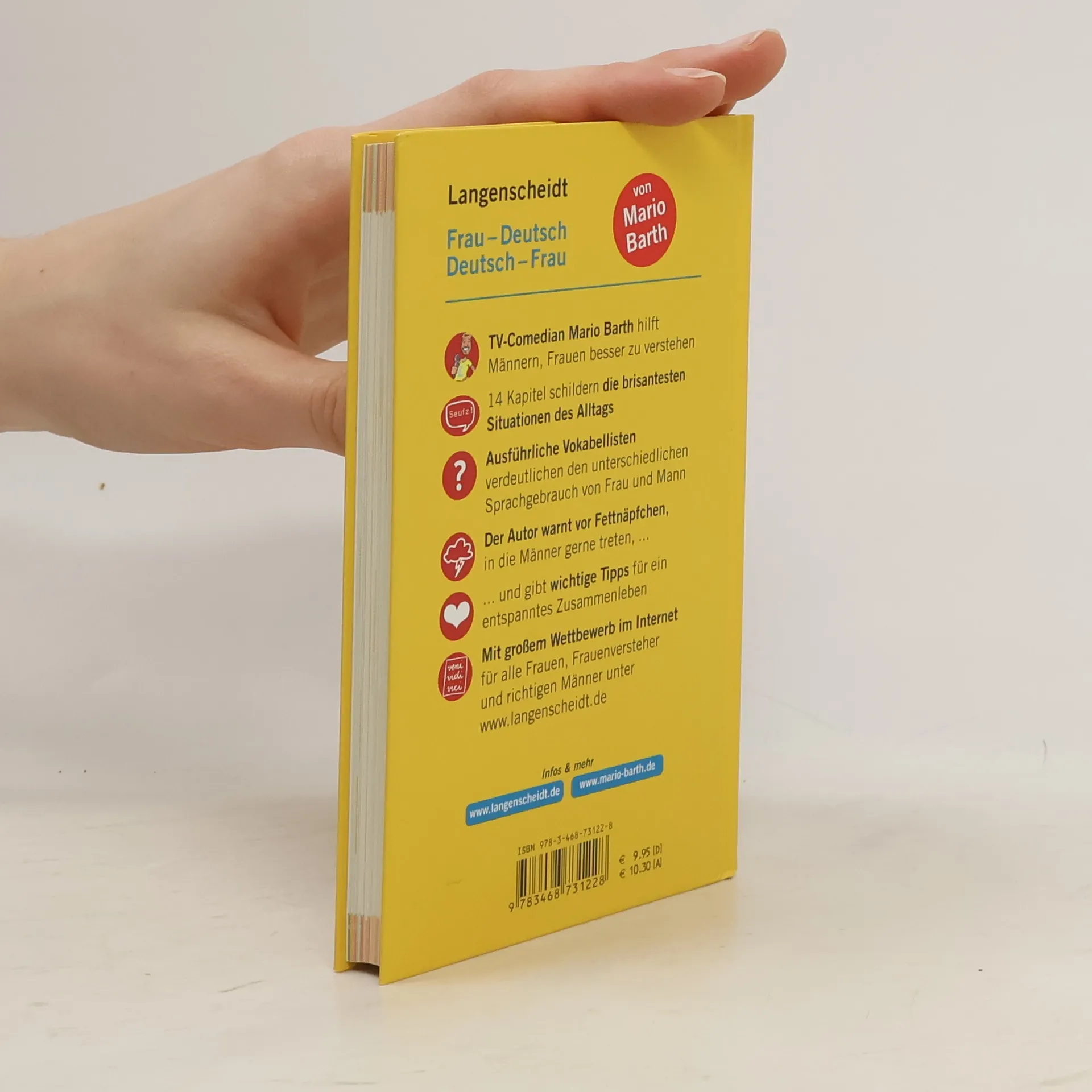 Schnelle Hilfe für den ratlosen Mann Frauen sprechen einfach eine andere Sprache als Männer. TV-Comedian Mario Barth leistet Verständigungshilfe und führt in 14 Kapiteln in die vertrackten Geheimnisse weiblichen Sprachgebrauchs ein.
