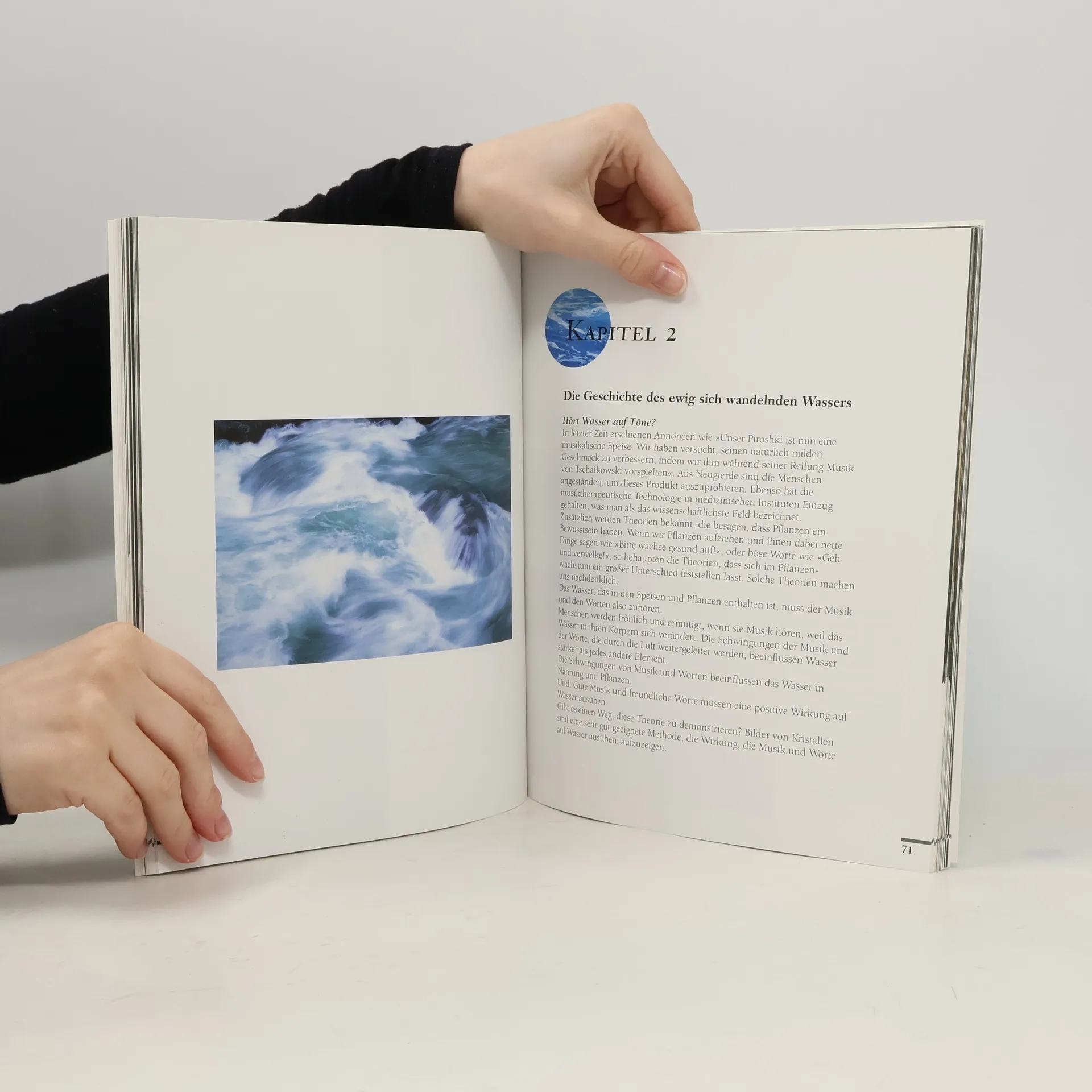Masaru Emoto hat erstmals die Kristalle von gefrorenem Wasser fotografiert. Unter schwierigsten Bedingungen entstanden atemberaubende Aufnahmen von Wasser aus der ganzen Welt – faszinierende Impressionen, die uns die Sinne und Herzen öffnen für die tief greifende Botschaft von Worten, Gedanken und Gefühlen. Immerhin besteht unser menschlicher Körper zu etwa zwei Dritteln aus Wasser: Was also bewirken die Werke unserer berühmten Komponisten, die Melodien von internationalen Volksliedern oder von Heavy Metal auch in uns? Wie reagiert das Wasser auf aussagekräftige Wörter in verschiedenen Sprachen? Diese Bilder bezaubern und erschüttern zugleich, denn sie beweisen: Wasser ist lebendig!