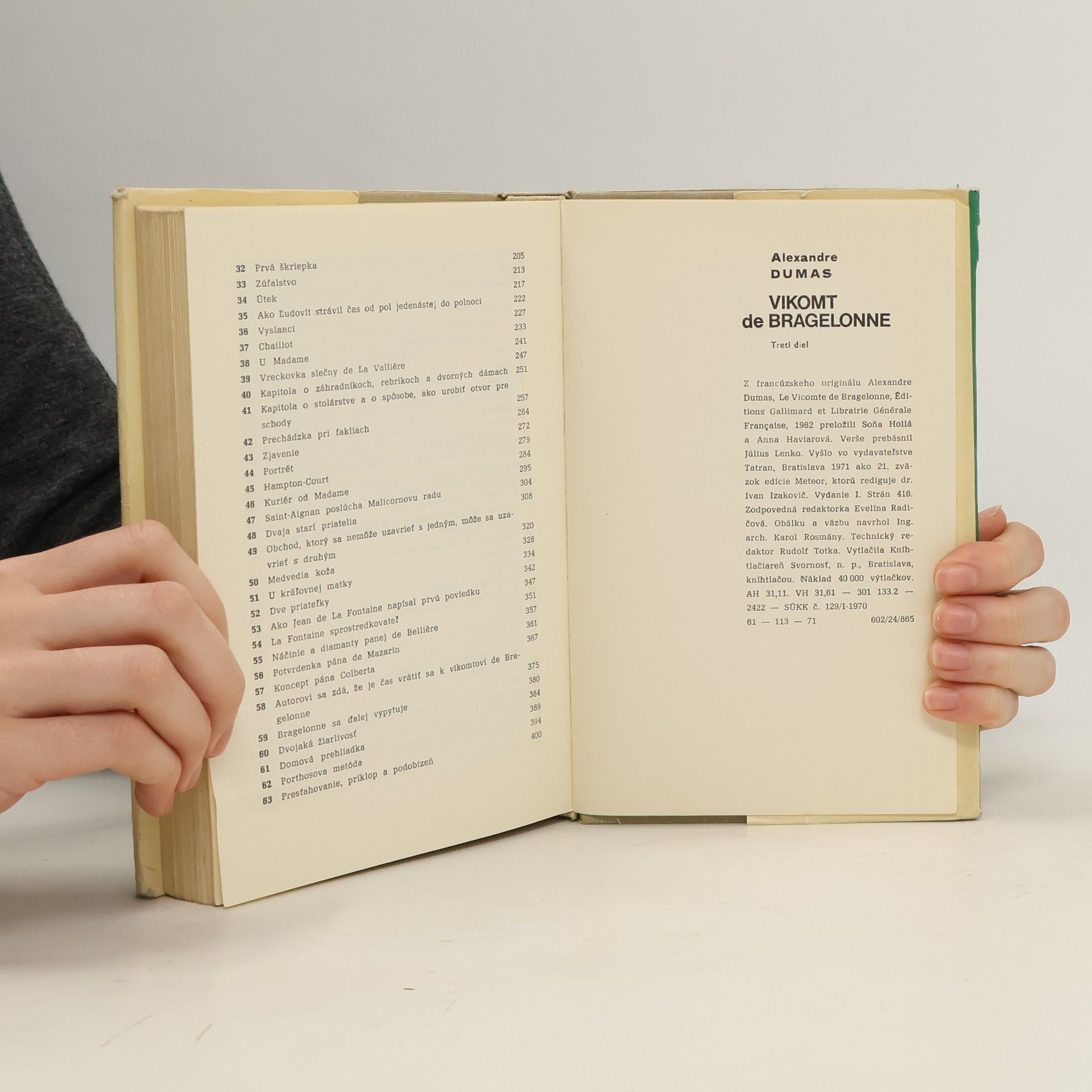 Sledujúc životné osudy mladého vikomta de Bragelonne, syna starého, dobre známeho Athosa, stretávame sa opäť aj s ďalšími hrdinami Troch mušketierov, s Porthosom, Aramisom a najmä s d’Artagnanom. Sú o tridsať rokov starší, no svojimi vlastnosťami, hrdinstvom, odvahou, statočnosťou, ktorýminás nadchýnali v prvých zväzkoch svojich príbehov, vedia nás upútať aj v rokoch, keď sa pomaly blíži súmrak ich života. Verše preložil Július Lenko
