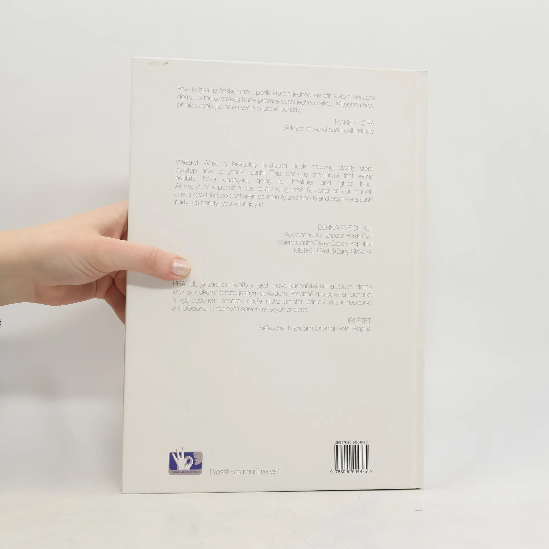 Detailní obrázková kniha s více než 300 fotografiemi, které vás precizně a jednoduše navedou krok za krokem jak zvládnout přípravu tolik populární japonské techniky sushi v domácím prostředí. Další kniha z úspěšné dílny Pražského kulinářského institutu, která vlídně tuto techniku ozřejmuje a pasuje na úroveň běžných pokrmů. Kniha svým zpracováním nadchne úplné amatéry ale i profesionální kuchaře. Sushi párty díky této knize zvládne úplně každý. Autoři na této knize velmi úzce spolupracovali s jedním z nejlepších mistrů umění sushi a japonské kuchyně v České republice, šéfkuchařem a uznávaným světovým odborníkem Markem Horou.