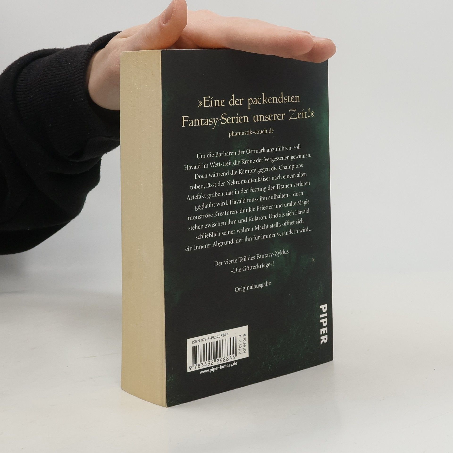 Endlich setzt Richard Schwartz seine hochgelobte Saga »Die Götterkriege« fort – diesmal sieht sich Havald, der Engel des Todes, seiner dunkelsten Bedrohung gegenüber: Der Feind hat einen raffinierten Plan entworfen, um den vernichtenden Angriff Thalaks auf die sieben Reiche vorzubereiten. An der Festung der Titanen soll ein Wettkampf entscheiden, wer die Krone der Vergessenen gewinnt und damit die Barbaren der Ostmark anführt. Bis dahin herrscht Waffenstillstand, doch während der Nekromantenkaiser nach einem alten Artefakt gräbt und Havalds Verbündete sich gefährlichen Intrigen aussetzen müssen, steht die wahre Bedrohung noch bevor. Denn Havald ahnt nicht, welch schreckliches Verhängnis der letzte Gegner des Wettkampfes für ihn bereithält – und dass ein tiefes Dunkel in seiner eigenen Seele auf den Moment wartet, um auszubrechen …