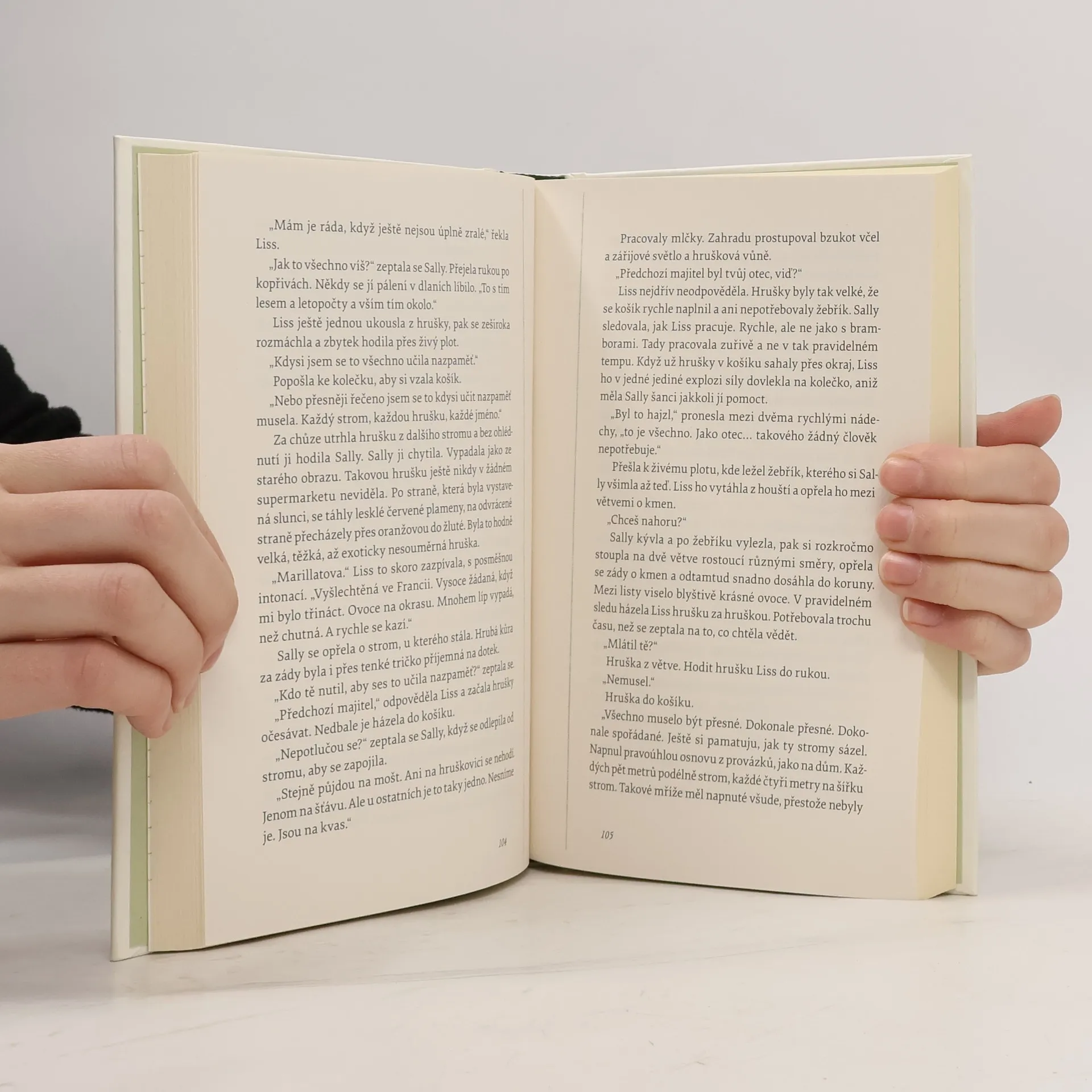 Román o tom, jak snadno lze ztratit kontrolu nad životem a jak je obtížné získat ji zpět Sally a Liss — dvě ženy, které by nemohly být rozdílnější. Sally má před maturitou, ale jediné, co si přeje, je mít pokoj. Na všechny se zlobí a všechno nesnáší: návrhy, nabídky, pravidla, předpisy, dospělé… Nejvíc ze všeho ale nesnáší otázky, hlavně ty, které se týkají jejího vzhledu. A tak se rozhodne utéct. Mlčenlivá Liss žije sama na statku mezi poli a vinicemi a vypadá to, že všechny práce kolem hospodářství bez problémů zvládá. Hned při prvním setkání Sally zjišťuje, že Liss je jiná než ostatní dospělí — pokradmu si ji neprohlíží, nesoudí ji, neklade jí podezíravé otázky. Liss nabídne Sally nocleh a jedna noc na statku se změní v pobyt na dobu neurčitou. Sally pomáhá Liss s hospodářstvím a mezi starými hrušněmi a včelími úly objevuje kouzlo obyčejnosti. Liss však není zdaleka tak silná, jak se zdá, a možná to nakonec nebude Sally, kdo potřebuje zachránit.
