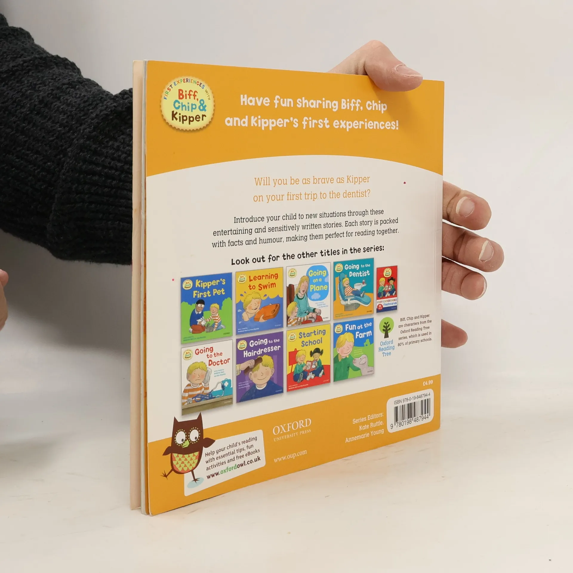 First Experiences with Biff, Chip & Kipper introduce your child to new situations through entertaining and sensitively written stories. Each story is packed with facts and humour, making them perfect for reading together. In this story Kipper goes to the dentist and learns how to look after his teeth.