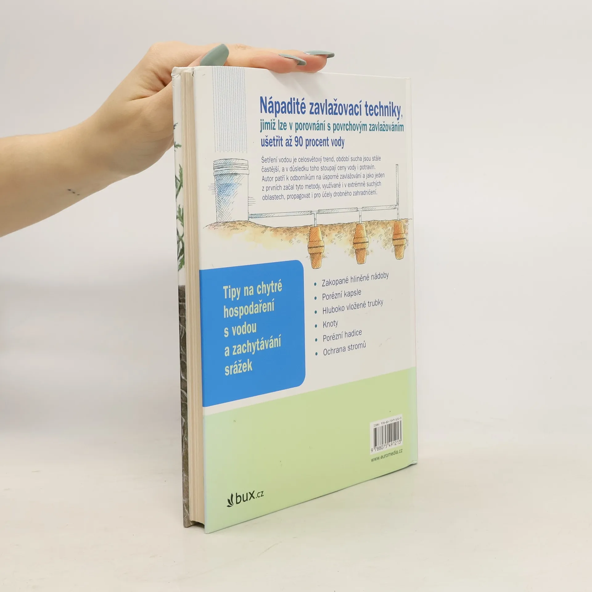 Příručka je zaměřená na alternativní techniky zavlažování rostlin. Na základě zkušeností z celého světa popisuje jednoduché zavlažovací systémy, s nimiž lze ušetřit značné množství vody. Patří sem například keramické květináče zanořené do půdy, využití knotů, jednoduché potrubní systémy, které lze použít i ve svahu, kapkové závlahy ad. Jde o moderní trend.