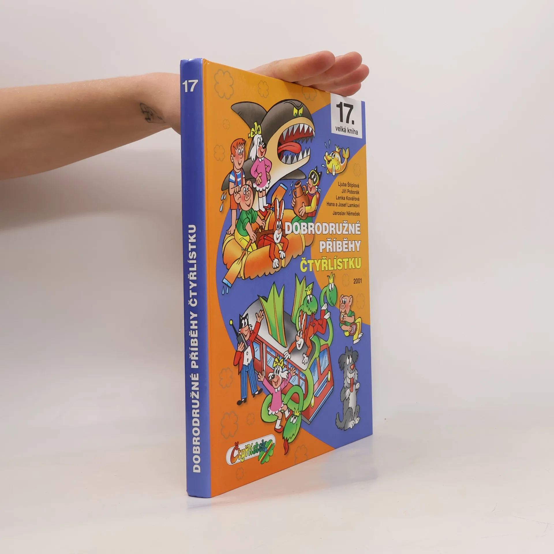 Již sedmnáctá velká kniha této oblíbené edice obsahuje příběhy z čísel 310 až 326 z roku 2001. V prvním příběhu Drak metrák prožije Čtyřlístek napínavou jízdu s drakem, který se promění ve vlak. Trochu popletené pohádky zase napraví v Pohádkové zimě a Brýle mámení odhalí dávno zapomenutou bitvu o Třeskoprsky. Jednoho malého šachového mistra naši čtyři kamarádi naučí, že i sportování má něco do sebe, a spoustu legrace zažijí se zvířátky v příběhu Máme rádi zvířata. Pinďovo neuvážené malování zase přivede na svět samotného čerta. Ve Skoku do neznáma unesou Čtyřlístek mimozemšťané a obr Barnabáš si velice oblíbí Fifinčiny buchty. Dozvíte se také, jak to dopadne, když ježibaba promění Bobíka v kocoura, i jak rozchodit sochy na Velikonočním ostrově. Naši kamarádi budou společně cestovat v čase s dvojčaty z budoucnosti nebo si zatančí na diskotéce s jeskyňkami. A nakonec zachrání Santu Klause v příběhu Vánoce nebudou. Jak je vidět, celá tato kniha je plná těch pravých čtyřlístkových dobrodružství, která můžete prožít společně s naší veselou čtyřkou přátel.