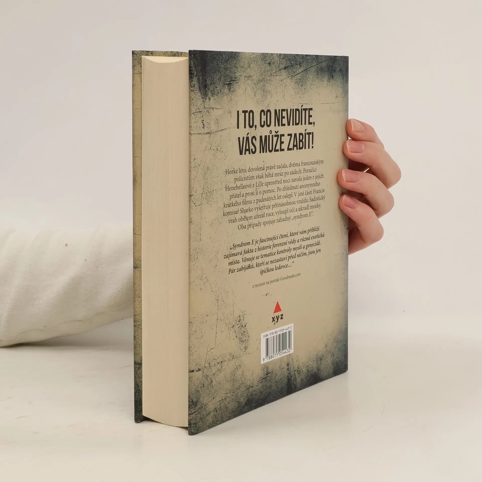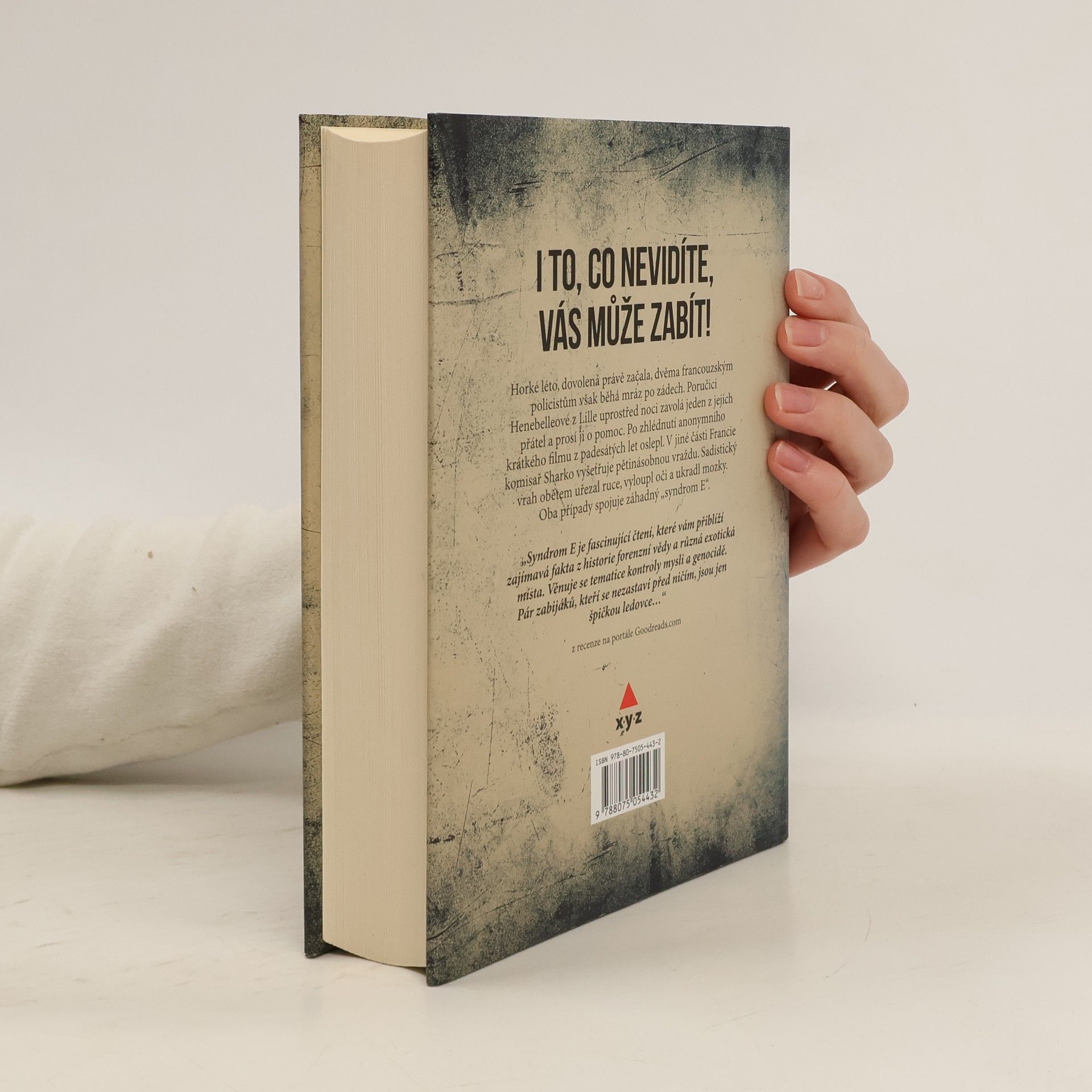 Horké léto, dovolená právě začala, dvěma francouzským policistům však běhá mráz po zádech. A rozhodně není žádným příjemným osvěžením. Lucii Henebelleové, poručici z Lille, uprostřed noci zavolá jeden z jejích přátel. Prosí ji o pomoc, protože oslepl poté, co se podíval na anonymní krátký film z padesátých let, na který náhodně natrefil v pozůstalosti fanatického sběratele filmů. Komisař Franck Shark z Nanterre se zdvihne od svého stolu, za kterým vytváří psychologické profily vrahů, aby šel na sever Francie prozkoumat pět zmrzačených těl, které našli bagry stavební společnosti. Mrtvoly nelze identifikovat, nejenže nemají ruce, sadistický vrah jim vyloupl oči a ukradl mozky. Vyšetřování Lucie Hebelleové a komisaře Sharka spojí záhadný "syndrom E". Při pátrání po jeho původu, projevech a následcích se francouzští policisté dostanou do výzkumné laboratoře neuromarketingu v Belgii, setkají se tváří v tvář s káhirskou chudobou a touhou žít co nejdůstojněji, jakož i s temnou minulostí kanadského sociálního systému.