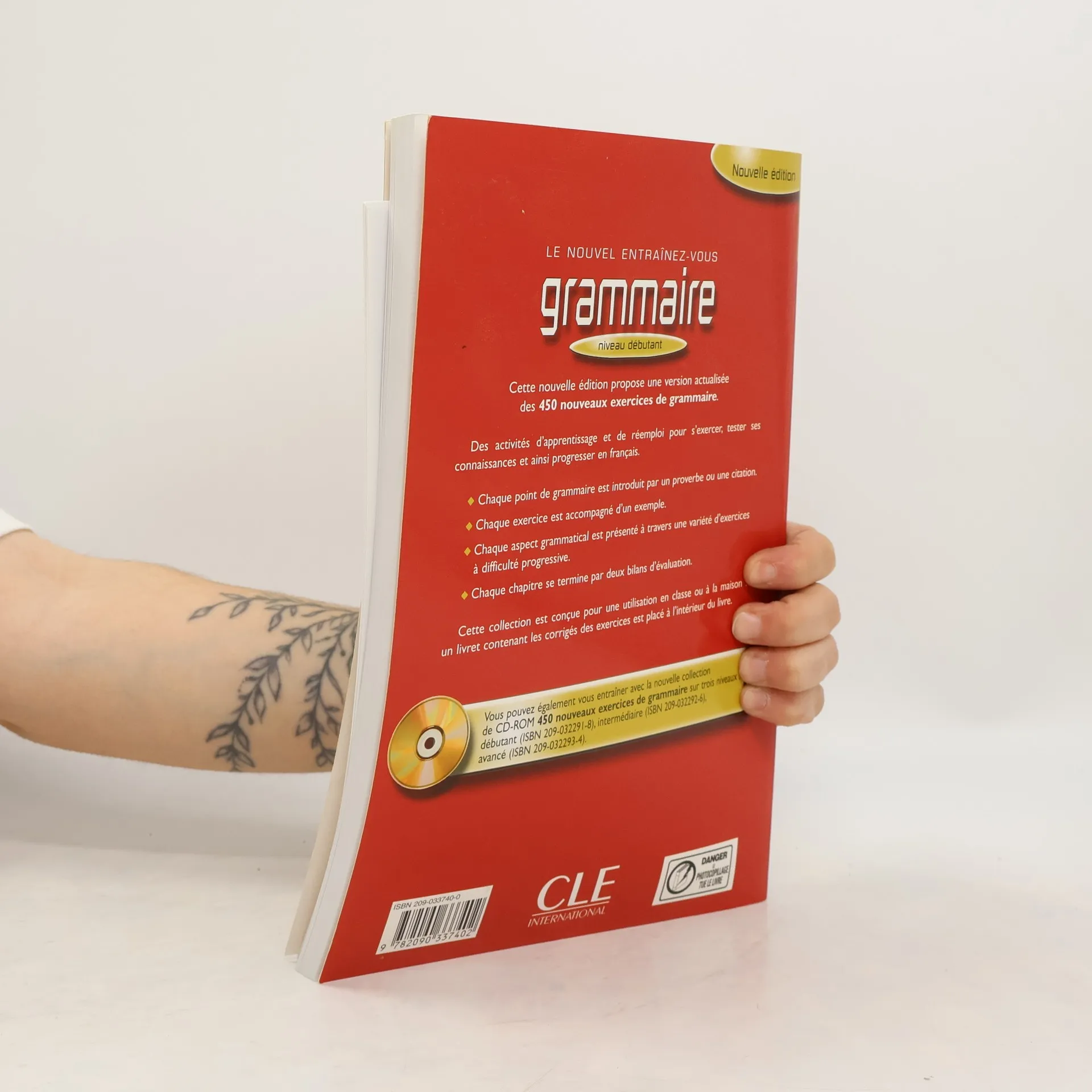 Cette nouvelle édition propose une version actualisée des 450 nouveaux exercices de grammaire. Des activités d'apprentissage et de réemploi pour s'exercer, tester ses connaissances et ainsi progresser en français. • Chaque point de grammaire est introduit par un proverbe ou une citation. • Chaque exercice est accompagné d'un exemple. • Chaque aspect grammatical est présenté à travers une variété d'exercices à difficulté progressive. • Chaque chapitre se termine par deux bilans d'évaluation. Cette collection est conçue pour une utilisation en classe ou à la maison : un livret contenant les corrigés des exercices est placé à l'intérieur du livre. Vous pouvez également vous entraîner avec la nouvelles collection de CD-ROM 450 nouveaux exercices de grammaire sur trois niveaux : débutant (ISBN 209-032291-8), intermédiaire (ISBN 209-032292-6), avancé (ISBN 209-032293-4).