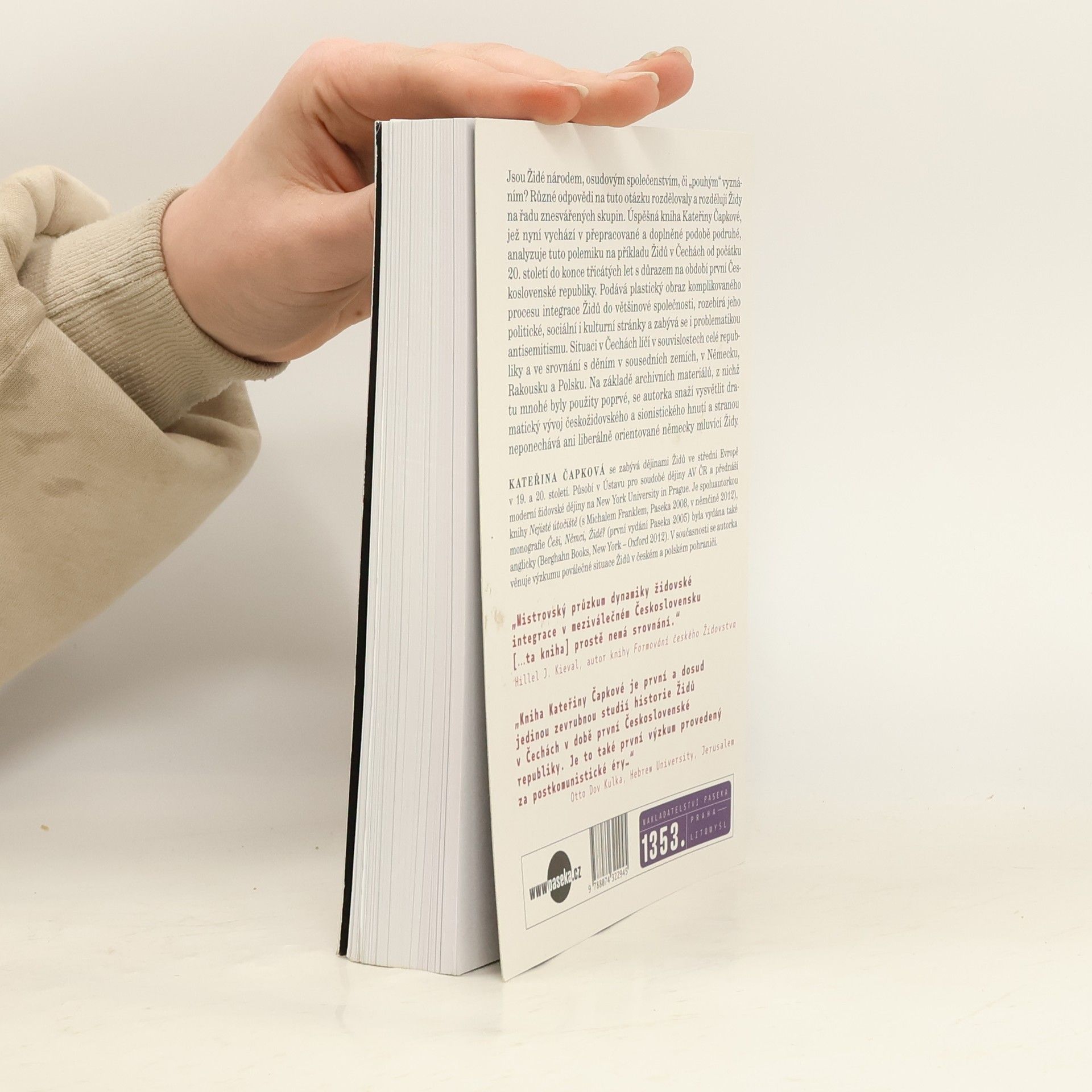 Národní identita Židů v Čechách 1918–1938. Jsou Židé národem, osudovým společenstvím či "pouhým" vyznáním? Různé odpovědi na tuto otázku rozdělovaly a rozdělují Židy na řadu znesvářených skupin. Autorka podává dlouho postrádaný a plastický obraz velice komplikovaného procesu integrace Židů do české, respektive do německé společnosti za první republiky, rozebírá jeho politické, sociální i kulturní stránky a zabývá se i problematikou antisemitismu. Na základě dosud nevyužitých archivních materiálů se snaží vysvětlit dramatický vývoj českožidovského a sionistického hnutí a stranou neponechává ani liberálně orientované německy mluvící Židy.