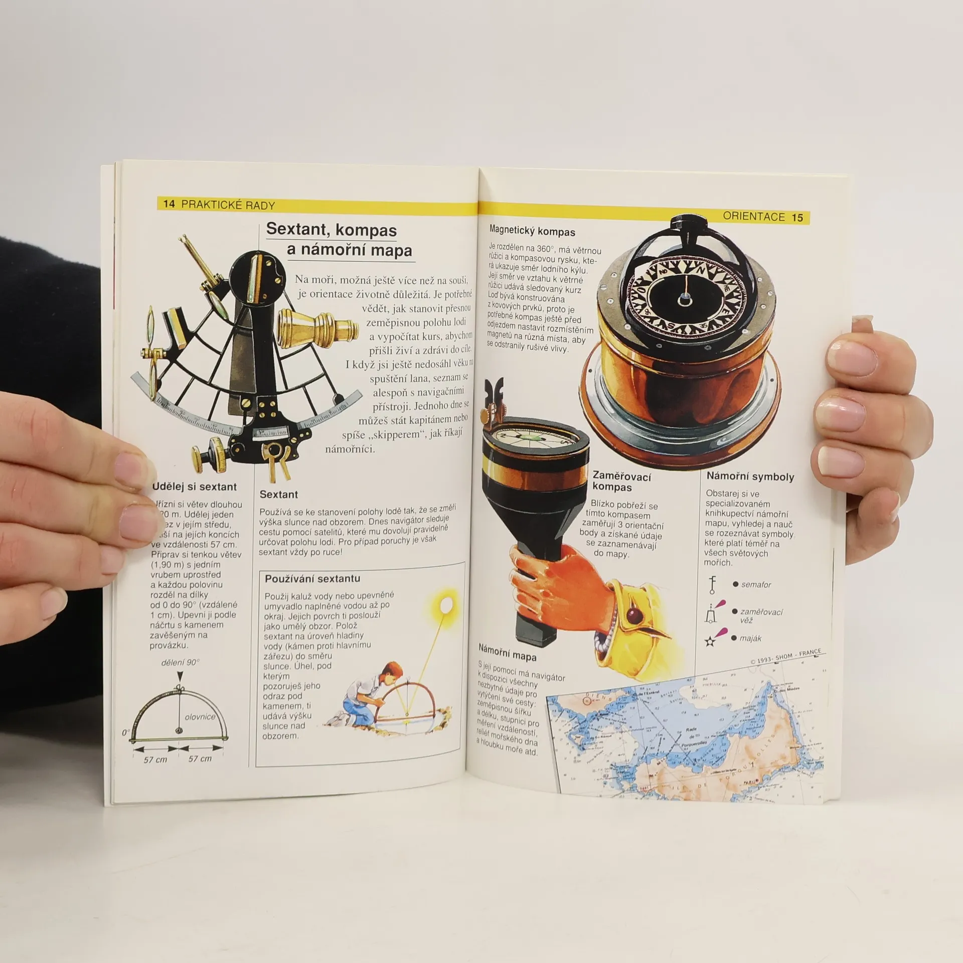 Práce s buzolou, mapami, seznámení se sextantem a kompasem, využití slunce, větru, hvězd, rostlin a turistických značek k orientaci v přírodě. Obálkový podnázev: stanovení správné polohy, čtení mapy, používání buzoly, zhotovení slunečních hodin, rozeznávání turistických značek, sestavení plánu cesty...