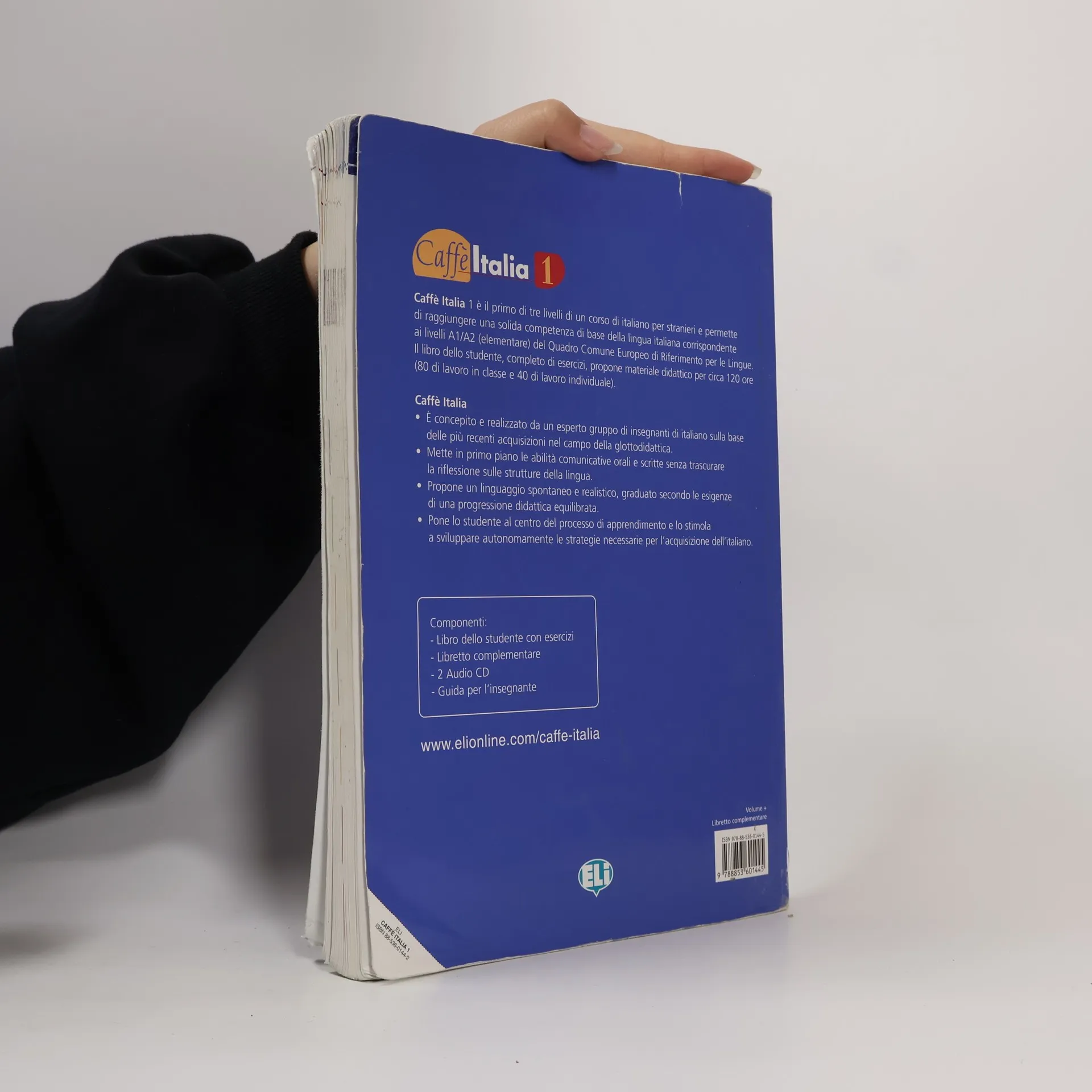 Caffé Italia 1 je prvním ze tří dílů učebnicového kurzu italštiny. Kurz má tři jazykové úrovně a umožňuje dosažení pevných základů znalostí italského jazyka odpovídající úrovním A1-A2 dle Společného evropského referenčního rámce. Kniha pro studenty je plná cvičení a předkládá didaktický materiál pro přibližně 120 hodin (80 hodin ve třídě a 40 hodin individuálních). Je koncipována a realizována skupinou odborníků, učitelů italštiny, založená na nejnovějších poznatcích z oblasti didaktiky jazyků. Klade do popředí schopnost ústní a písemné komunikace s respektováním jazykových struktur. Předkládá spontánní i reálný jazyk, odstupňovaný dle náročnosti vyvážené didaktické posloupnosti. Umožňuje studentovi stát se centrem procesu učení a stimuluje ho k osvojení si samostatné metody studia italštiny. // Upozornění: Pokud na fotografii nejsou zobrazeny přílohy (CD, brožury, mapy apod.), pak tyto nejsou součástí.