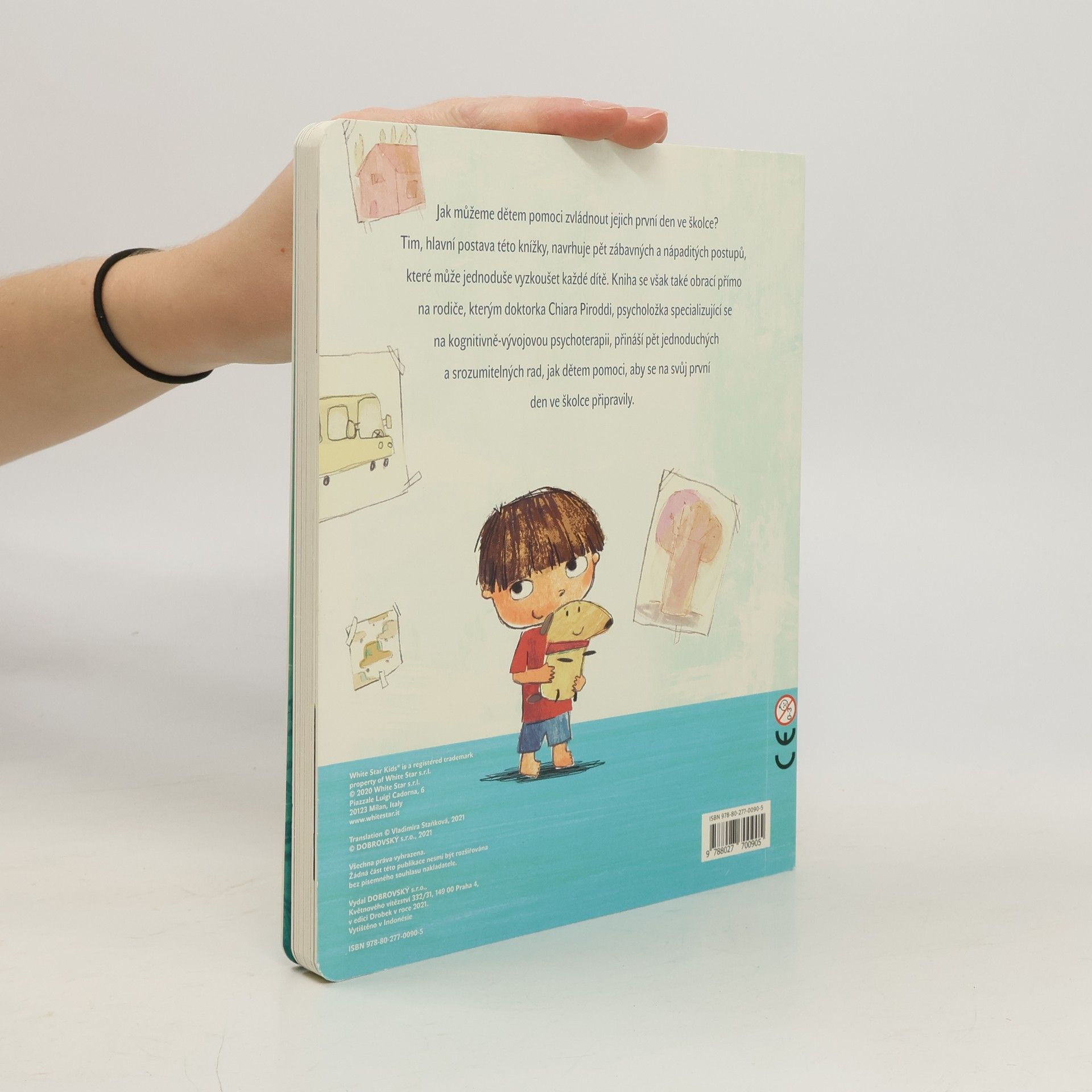 Jak můžeme dětem pomoci zvládnout jejich první den ve školce? Tim, hlavní postava této knížky, navrhuje pět zábavných a nápaditých postupů, které může jednoduše vyzkoušet každé dítě. Kniha se však také obrací přímo na rodiče a přináší pět jednoduchých rad, jak dětem pomoci, aby se na svůj první den ve školce připravily.
