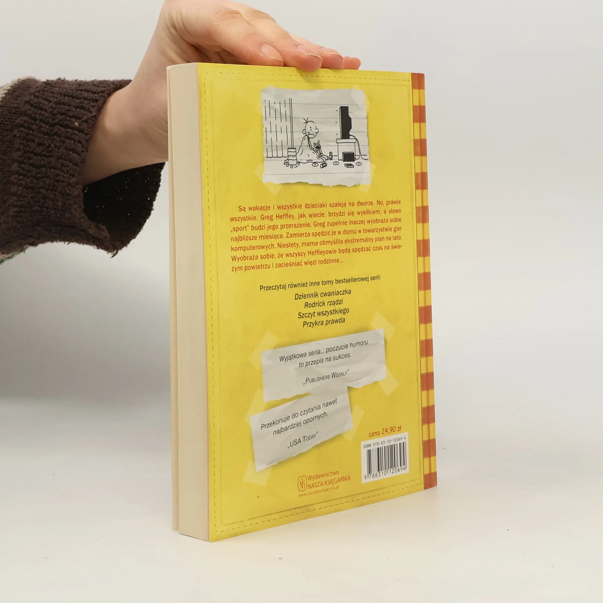 Są wakacje i wszystkie dzieciaki szaleją na dworze. No, prawie wszystkie. Greg Heffley, jak wiecie, brzydzi się wysiłkiem, a słowo 'sport' budzi jego przerażenie. Greg zupełnie inaczej wyobraża sobie najbliższe miesiące. Zamierza spędzić je w domu w towarzystwie gier komputerowych. Niestety, mama obmyśliła ekstremalny plan na lato. Wyobraża sobie, że wszyscy Heffleyowie będą spędzać czas na świeżym powietrzu i zacieśniać więzi rodzinne... Przekonuje do czytania nawet najbardziej opornych. 'USA TODAY'?