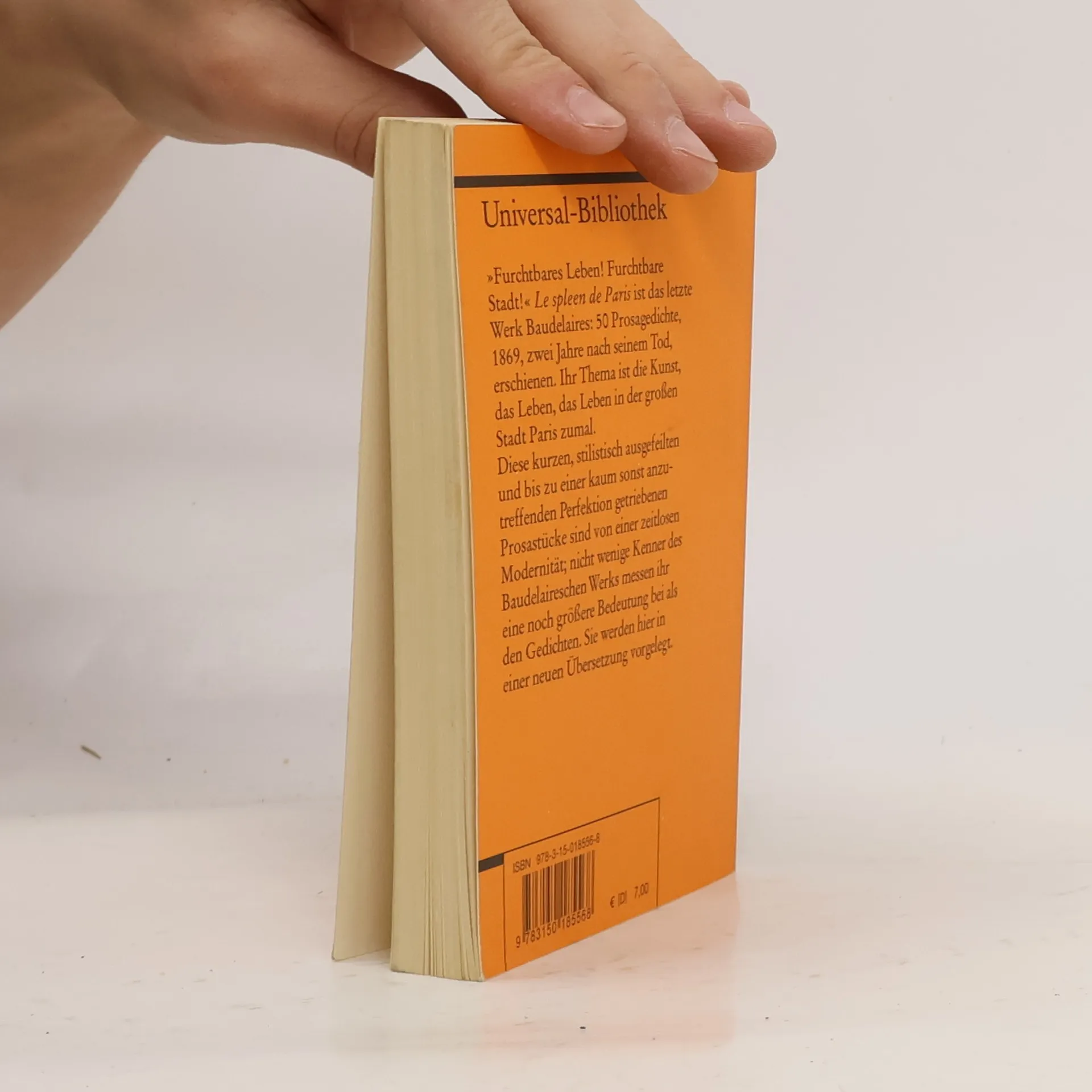 'Le spleen de Paris' ist das letzte Werk des großen Wegbereiters der Moderne: 50 Prosagedichte, 1869, zwei Jahre nach Baudelaires Tod, erschienen. Ihr Thema ist die Kunst und das Leben, das Leben vor allem in der großen Stadt Paris, der "Hauptstadt des 19. Jahrhunderts". Diese kurzen, stilistisch ausgefeilten und bis zu einer kaum sonst anzutreffenden Perfektion getriebenen Prosastücke, die nun in einer neuen Übersetzung vorliegen, sind von einer zeitlosen Modernität.