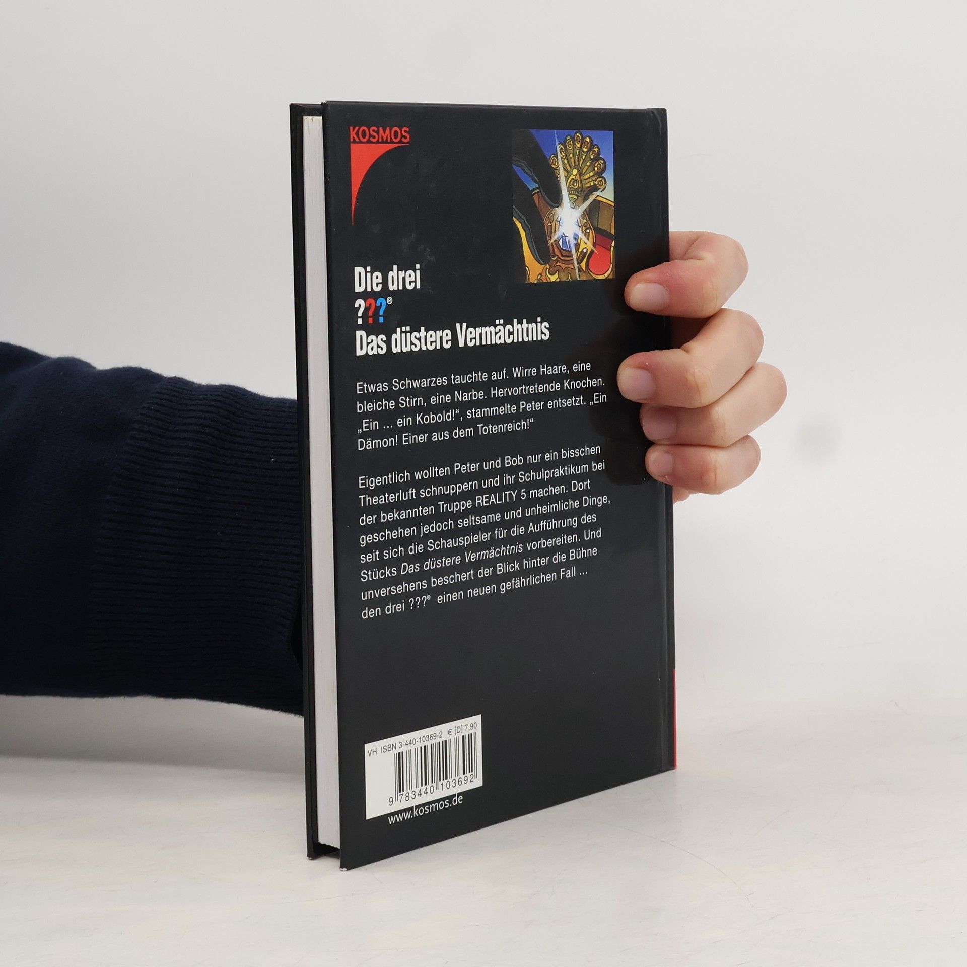 Etwas Schwarzes tauchte auf. Wirre Haare, eine bleiche Stirn, eine Narbe. Hervortretende Knochen. "Ein...ein Kobold!", stammelte Peter entsetzt. "Ein Dämon! Einer aus dem Totenreich!" Eigentlich wollten Peter und Bob nur ein bisschen Theaterluft schnuppern und ihr Schulpraktikum bei der bekannten Truppe REALITY 5 machen. Dort geschehen jedoch seltsame und unheimliche Dinge, seit sich die Schauspieler auf die Aufführung des Stücks Das düstere Vermächtnis vorbereiten. Und unversehens beschert der Blick hinter die Kulissen den drei ??? einen neuen gefährlichen Fall...