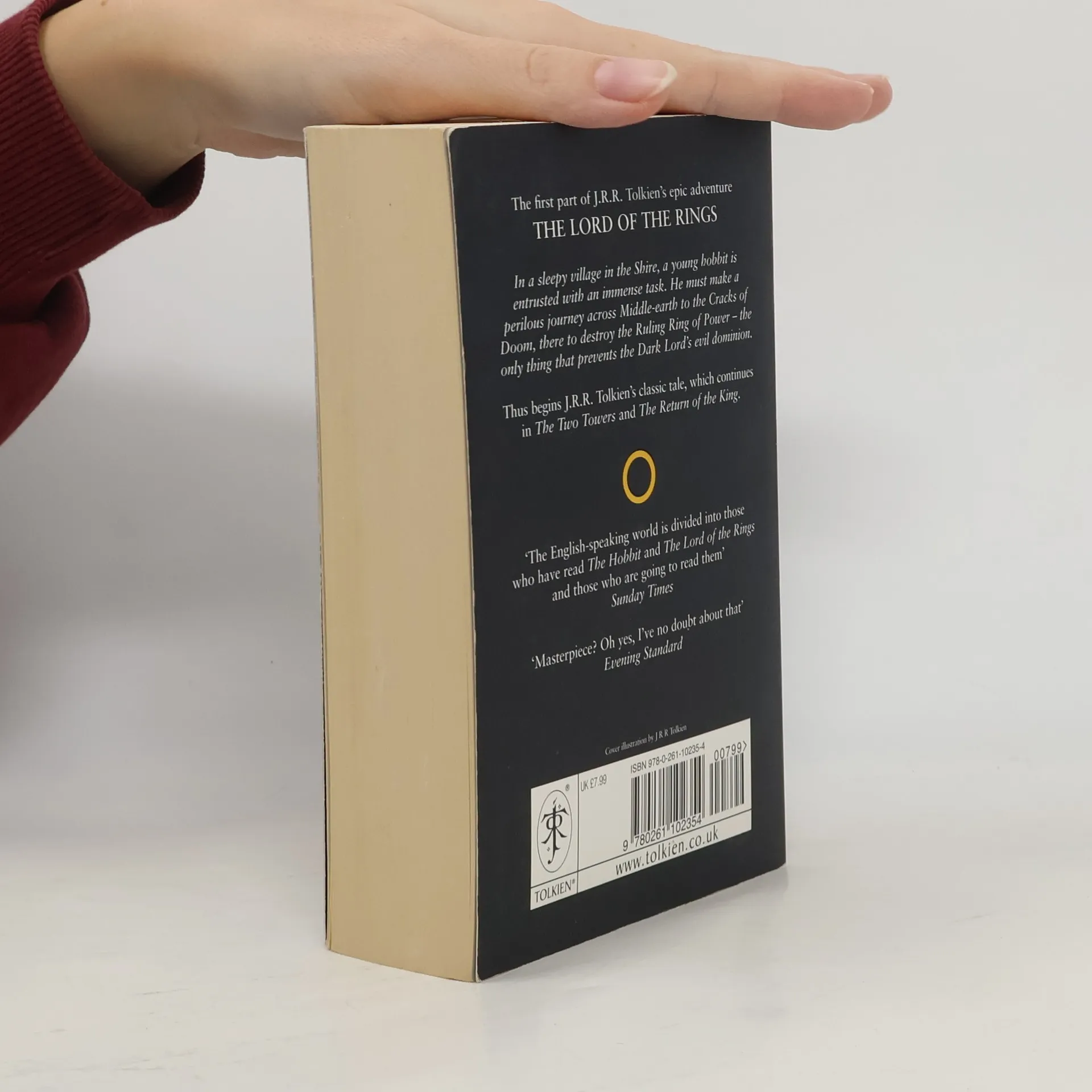 Continuing the story begun in The Hobbit, this is the first part of Tolkien s epic masterpiece, The Lord of the Rings, featuring a striking black cover based on Tolkien s own design, the definitive text, and a detailed map of Middle-earth. Sauron, the Dark Lord, has gathered to him all the Rings of Power the means by which he intends to rule Middle-earth. All he lacks in his plans for dominion is the One Ring the ring that rules them all which has fallen into the hands of the hobbit, Bilbo Baggins. In a sleepy village in the Shire, young Frodo Baggins finds himself faced with an immense task, as his elderly cousin Bilbo entrusts the Ring to his care. Frodo must leave his home and make a perilous journey across Middle-earth to the Cracks of Doom, there to destroy the Ring and foil the Dark Lord in his evil purpose. Part of a set of three paperbacks, this popular edition is once again available in its classic black livery designed by Tolkien himself."