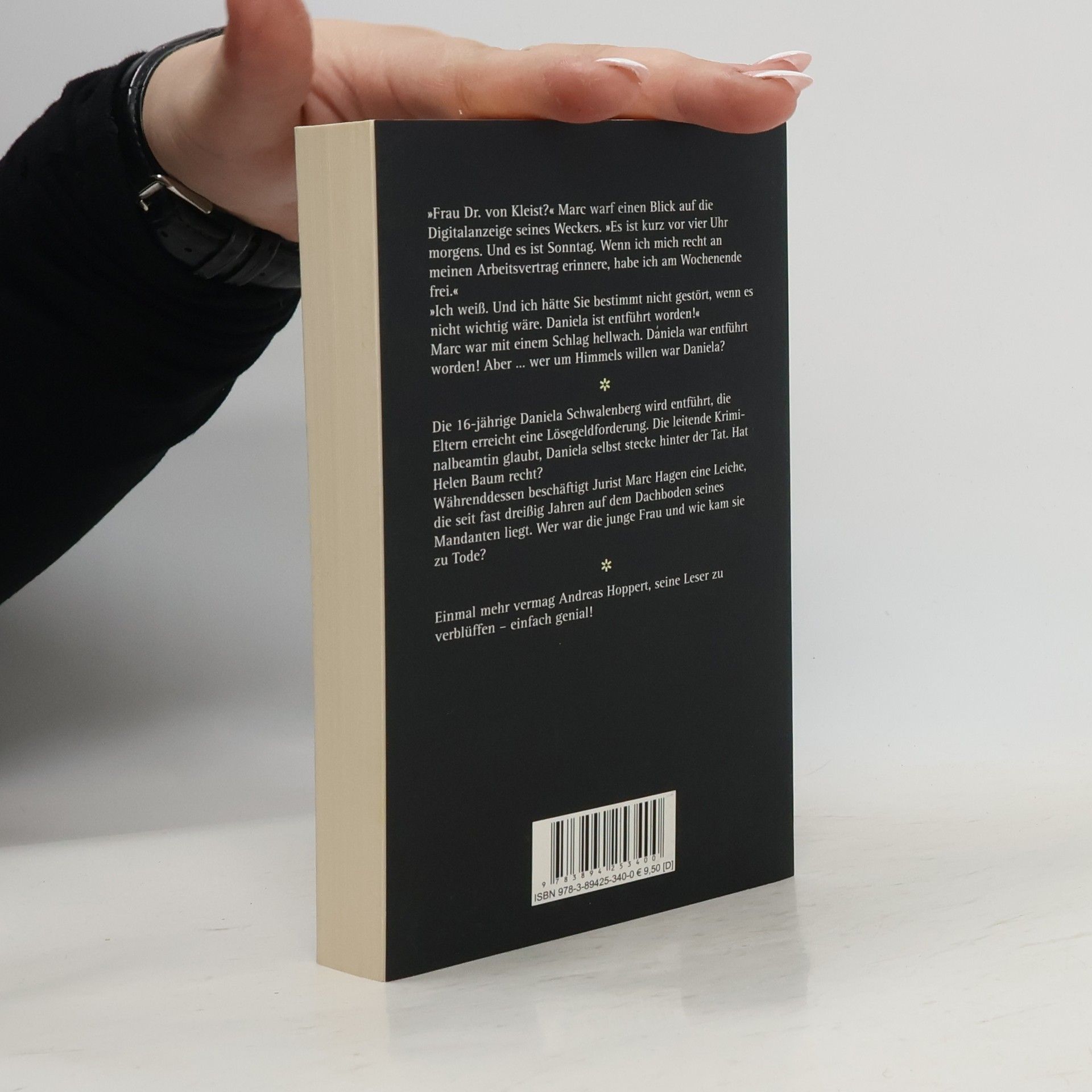 Die 16-jährige Daniela Schwalenberg wird entführt. Schon bald erreicht die Eltern eineLösegeldforderung in Höhe von fünf Millionen Euro. Und natürlich soll die Polizeiherausgehalten werden. Doch die ist längst eingeschaltet, sich allerdings uneins: Derleitenden Kriminalbeamtin Helen Baum kommt an der Geschichte einiges merkwürdig vorund sie zögert Entscheidungen hinaus. Ihr Mitarbeiter Peter Remmert dagegen willschnellstmöglich die üblichen Abläufe in Bewegung setzen, um das Leben der Geisel zuretten.Währenddessen recherchiert der Jurist Marc Hagen eine ganz andere Geschichte: DerErbe eines Mehrfamilienhauses findet auf dem Dachboden eine mumifizierte Leiche. Werist die Tote und wer hat sie in dem Haus versteckt?