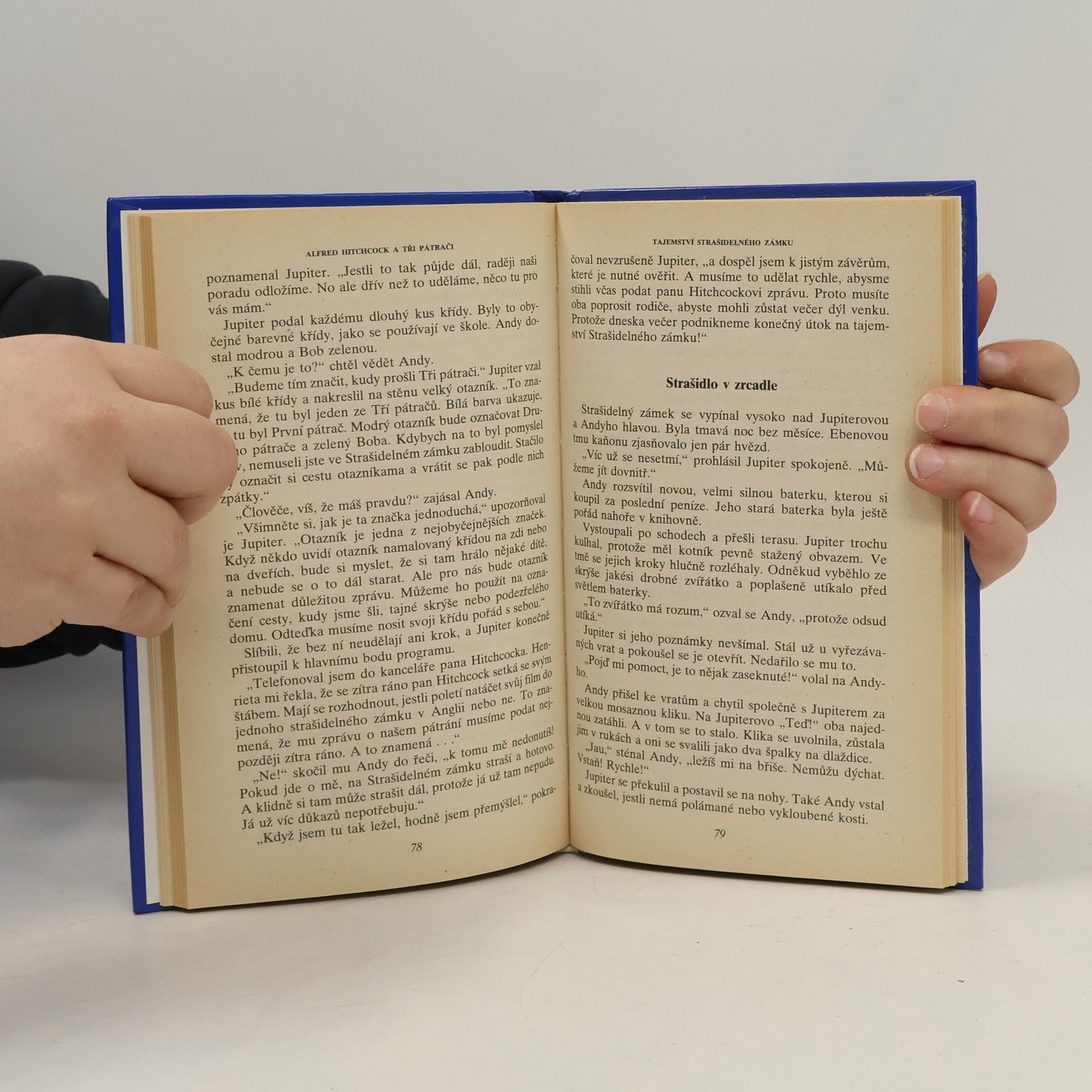 Všichni tři chlapci bydlí v Rocky Beach, malém městečku na pobřeží Tichého oceánu, vzdáleném jenom několik kilomwetrů od Hollywoodu. Bob Andrews je malý, ale obratný mládenec, přemýšlivý, hloubavý typ, i když má sklony k dobrodružství. Petr Crenshaw je poměrně vysoký a svalnatý a o Jupiterovi Jonesovi by se dalo říci, že je tlustý a trochu nemotorný. Už jako malému se mu kvůli tomu ostatní smáli. Proto vždy chtěl, aby ho lidé brali vážně a tak jen co se naučil číst, četl všechno co se mu dostalo do rukou a nejvíc ho zaujaly knihy o kriminalistice a psychologii. A protože měl dobrou paměť, zapamatoval si téměř všechno co přečetl a moc rád o všem diskutoval, takže i učitelé ve škole pokládali za moudřejší nepouštět se s ním do debaty o rozličných faktických problémech. Stávalo se jim totiž, že je často usvědčil z omylu. Tito tři podnikavci se nabídli najít A. Hitchcockovi strašidelný dům pro jeho nový film. Ve starých novinách se dočetli o Strašidelném zámku a samozřejmě se okamžitě rozhodnou ho navštívit. Velmi rychle zjistí, že přívlastek „strašidelný“ není náhodný a s řáděním strašidla se setkávají na každém kroku.