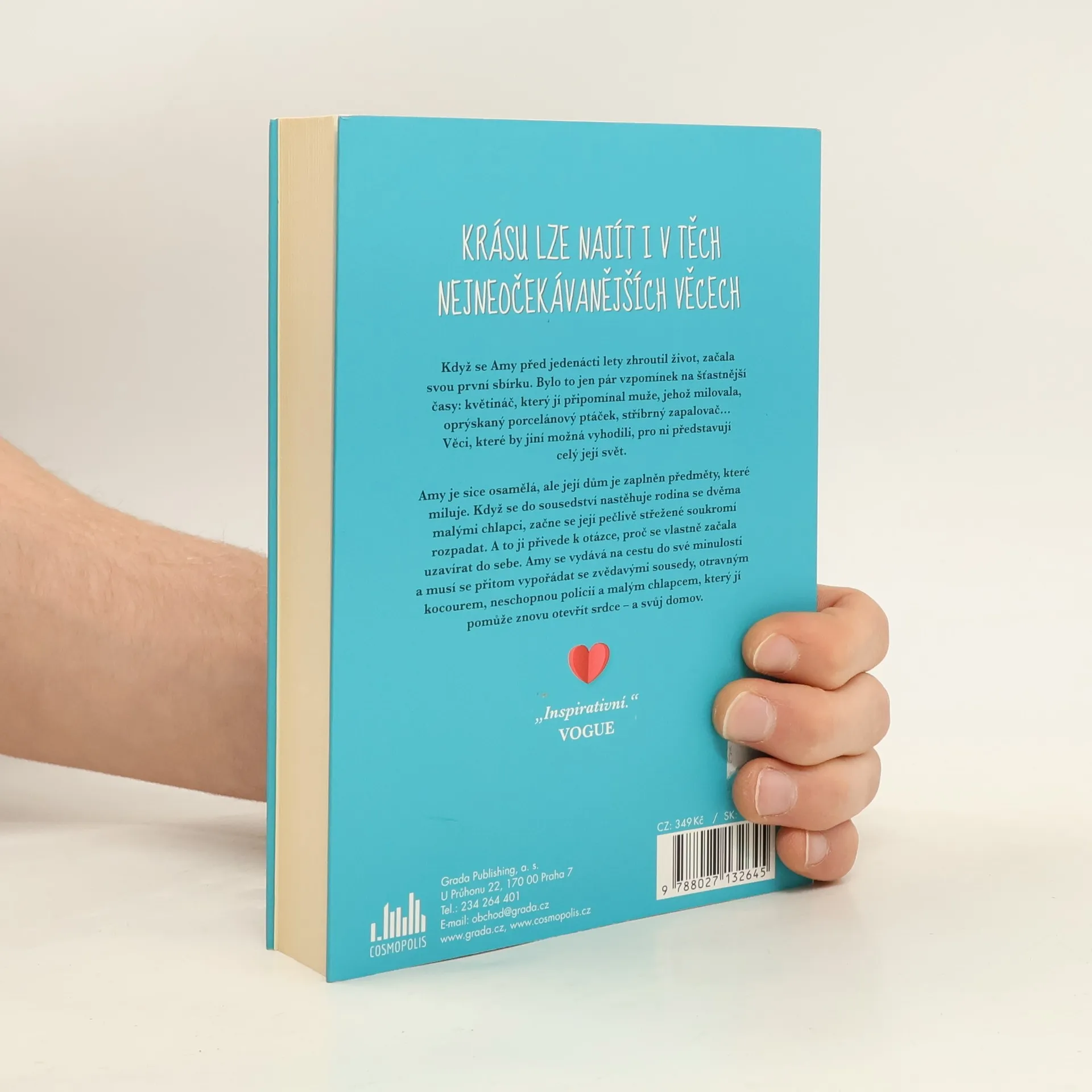 Krásu lze najít i v těch nejneočekávanějších věcech Když se Amy před jedenácti lety zhroutil život, začala svou první sbírku. Bylo to jen pár vzpomínek na šťastnější časy: květináč, který jí připomínal muže, jehož milovala, oprýskaný porcelánový ptáček, stříbrný zapalovač… Věci, které by jiní možná vyhodili, pro ni představují celý její svět. Amy je sice osamělá, ale její dům je zaplněn předměty, které miluje. Když se do sousedství nastěhuje rodina se dvěma malými chlapci, začne se její pečlivě střežené soukromí rozpadat. A to ji přivede k otázce, proč se vlastně začala uzavírat do sebe. Amy se vydává na cestu do své minulosti a musí se přitom vypořádat se zvědavými sousedy, otravným kocourem, neschopnou policií a malým chlapcem, který jí pomůže znovu otevřít srdce – a svůj domov.