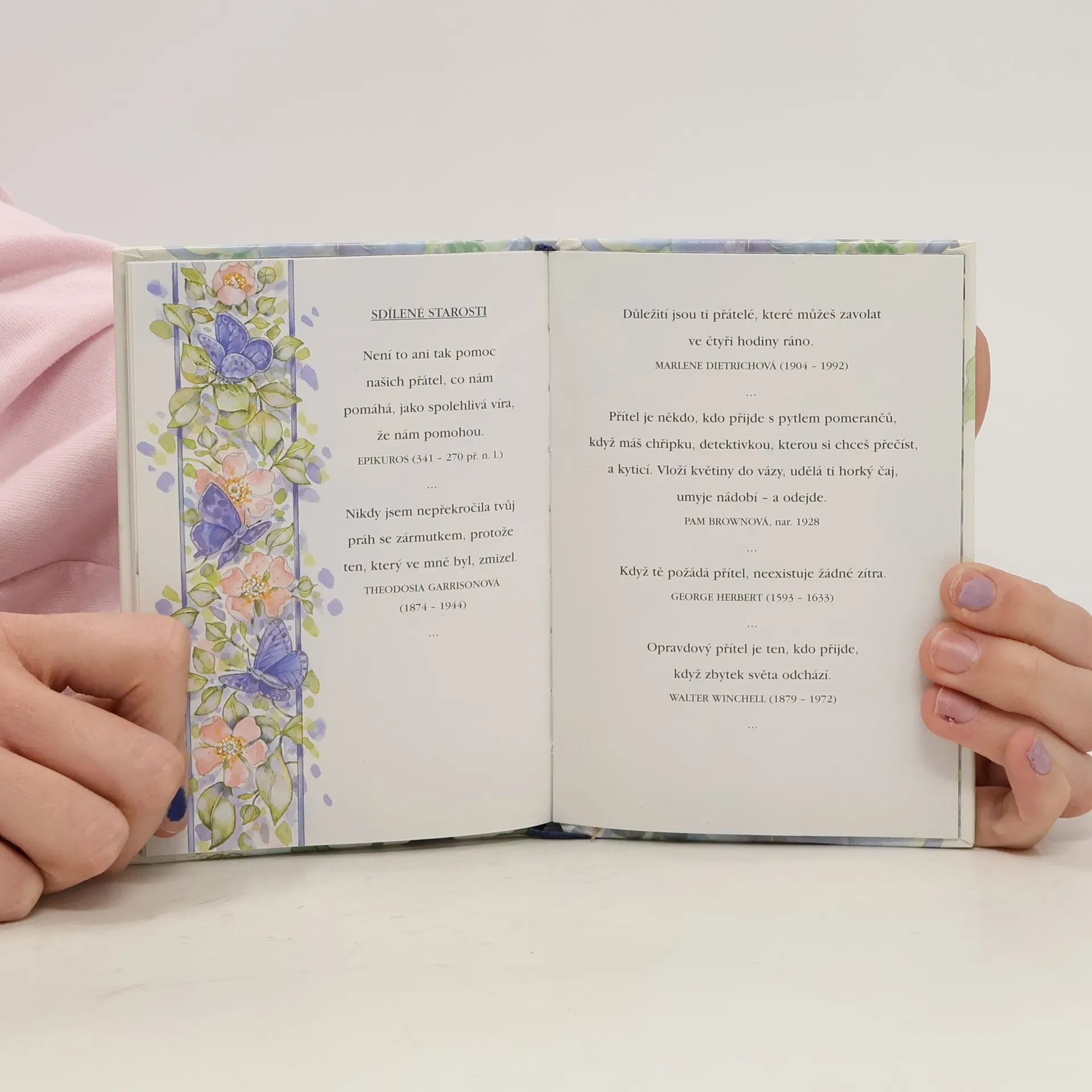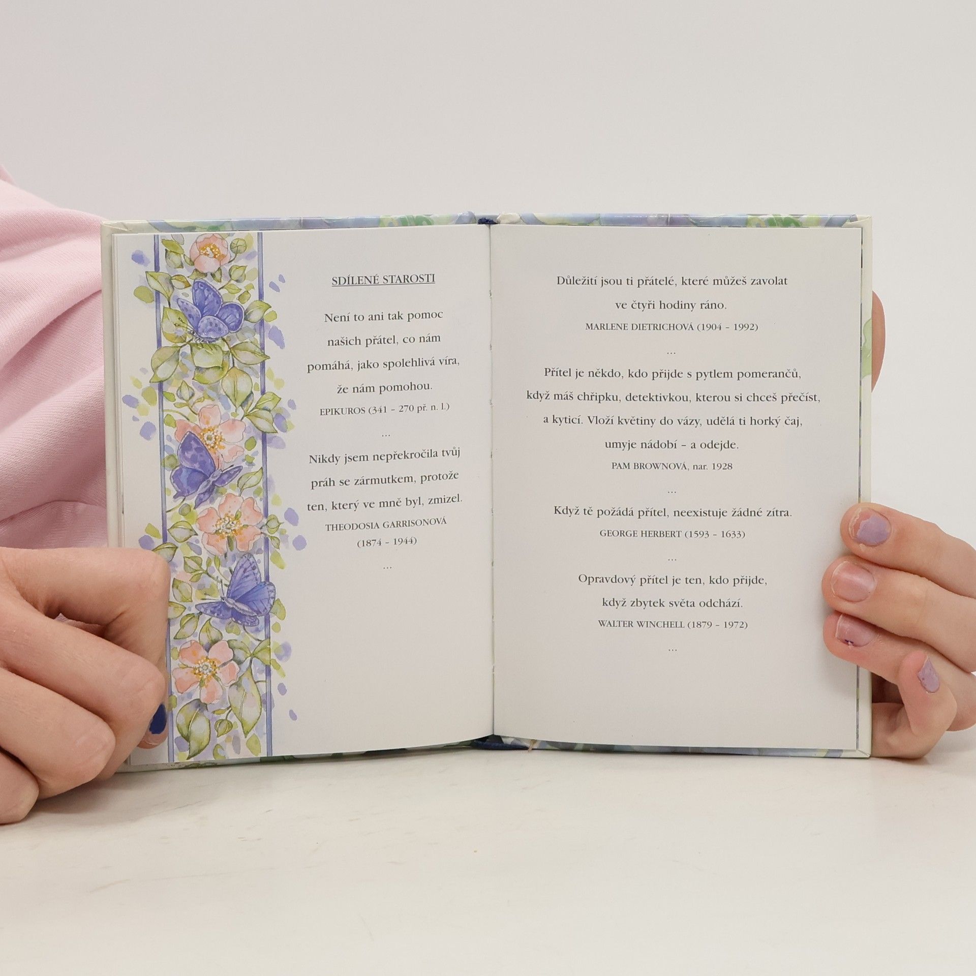 Tato malá sbírka citátů může sloužit jako projev vděčnosti tam, kde přání ani drahocenné dary nejsou dostatečným vyjádřením díků - díků za to, že vedle nás stojí onen vzácný člověk, které smíme nazývat přítelem.