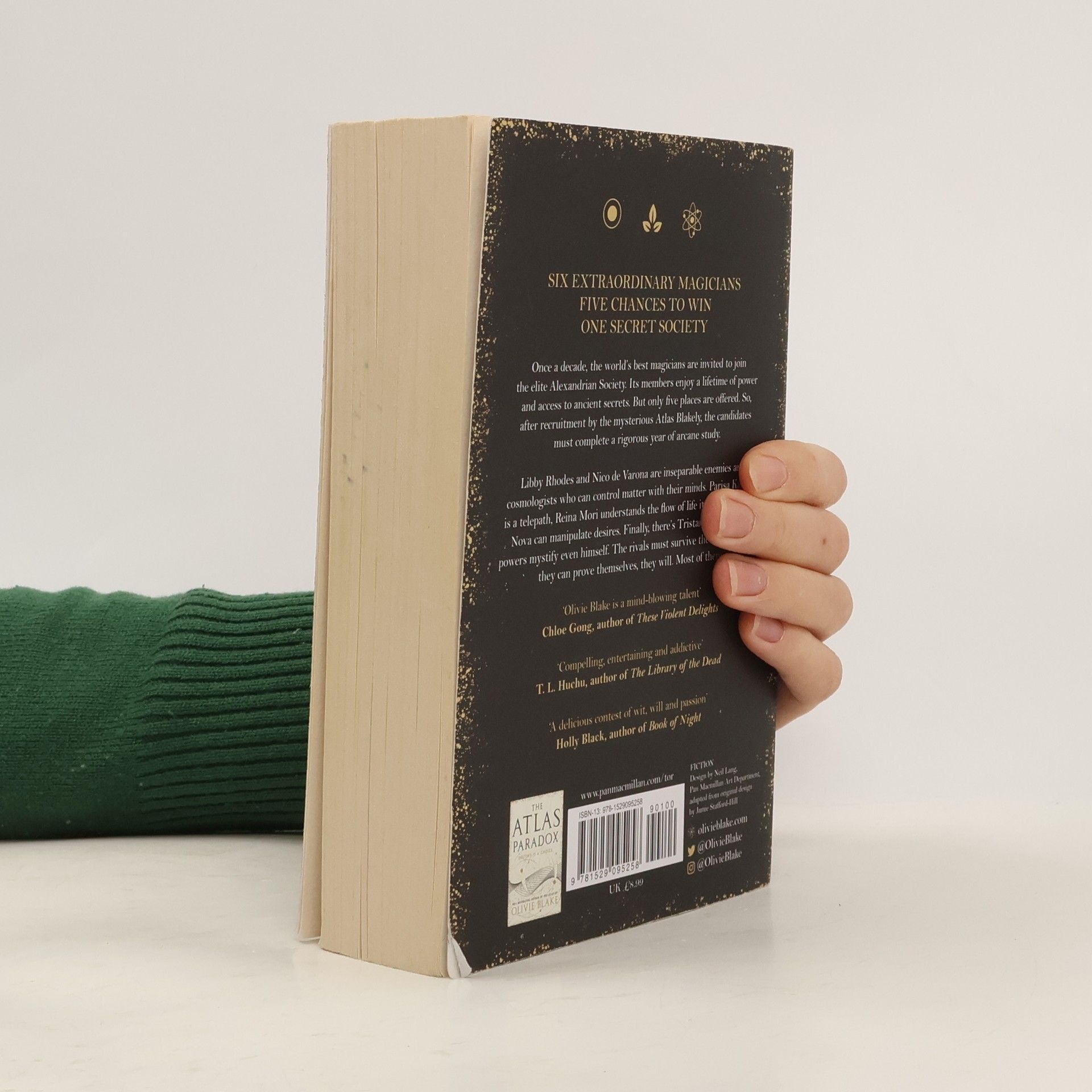 Secrets. Betrayal. Seduction.Welcome to the Alexandrian Society.When the world's best magicians are offered an extraordinary opportunity, saying yes is easy. Each could join the secretive Alexandrian Society, whose custodians guard lost knowledge from ancient civilizations. Their members enjoy a lifetime of power and prestige. Yet each decade, only six practitioners are invited - to fill five places.Contenders Libby Rhodes and Nico de Varona are inseparable enemies, cosmologists who can control matter with their minds. Parisa Kamali is a telepath, who sees the mind's deepest secrets. Reina Mori is a naturalist who can perceive and understand the flow of life itself. And Callum Nova is an empath, who can manipulate the desires of others. Finally there's Tristan Caine, whose powers mystify even himself.Following recruitment by the mysterious Atlas Blakely, they travel to the Society's London headquarters. Here, each must study and innovate within esoteric subject areas. And if they can prove themselves, over the course of a year, they'll survive. Most of them.The story continues in The Atlas Paradox, the heart-stopping sequel