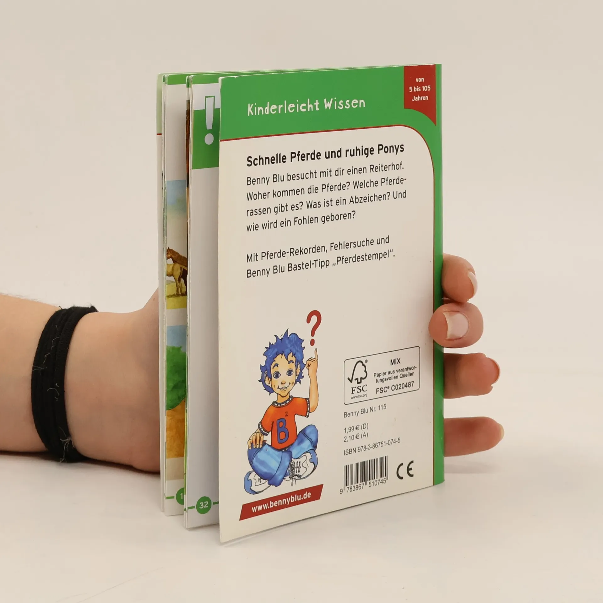 Schnelle Pferde und ruhige Ponys. Benny Blu besucht mit dir einen Reiterhof. Woher kommen die Pferde? Welche Pferderassen gibt es? Was ist ein Abzeichen? Und wie wird ein Fohlen geboren? Benny Blu Lernbuch, Format DIN A6, 32 Seiten, geheftet, 4/4 farbig