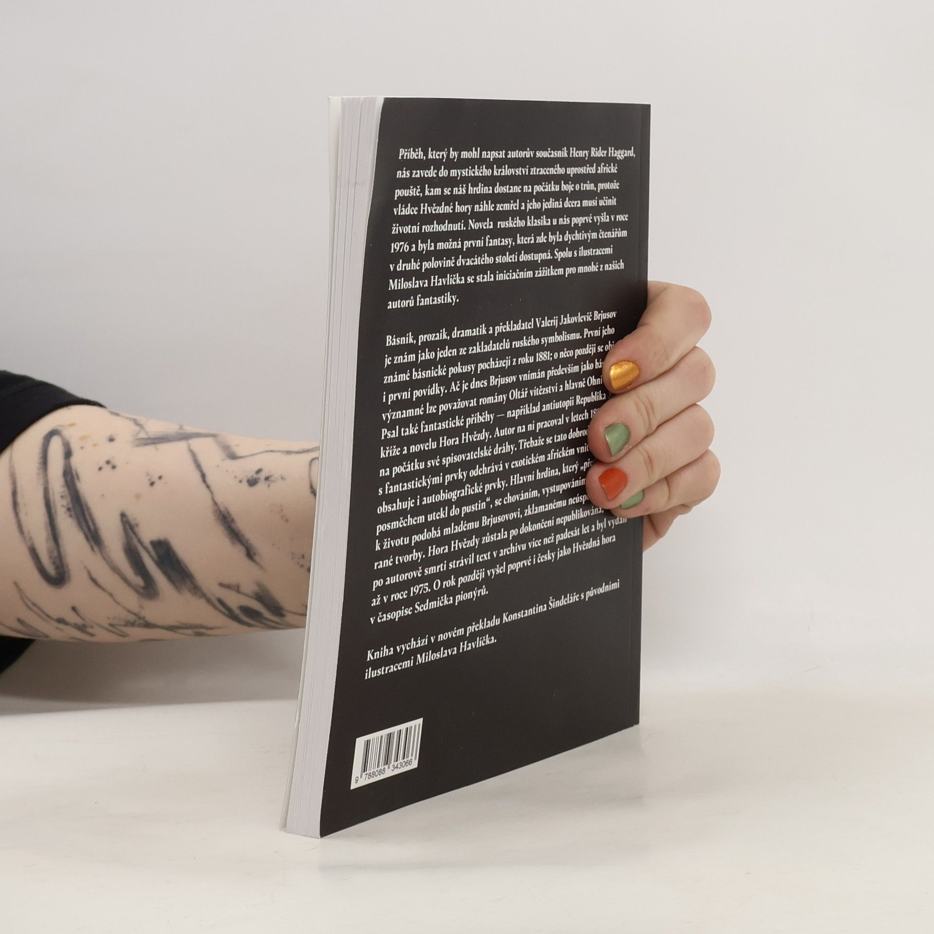 Příběh, který by mohl napsat autorův současník Henry Rider Haggard, nás zavede do mystického království ztraceného uprostřed africké pouště, kam se náš hrdina dostane na počátku boje o trůn, protože vládce Hvězdné hory náhle zemřel a jeho jediná dcera musí učinit životní rozhodnutí. Novela ruského klasika u nás poprvé vyšla v roce 1976 v časopise Sedmička pionýrů a byla možná první fantasy, která zde byla dychtivým čtenářům v 2. polovině 20. století dostupná. Spolu s ilustracemi Miloslava Havlíčka se stala iniciačním zážitkem pro mnohé z našich autorů fantastiky. Básník, prozaik, dramatik a překladatel Valerij Jakovlevič Brjusov je znám jako jeden ze zakladatelů ruského symbolismu. Psal také fantastické příběhy – například antiutopii Republika Jižního kříže a novelu Hora Hvězdy. Autor na ní pracoval v letech 1895–99, na počátku své spisovatelské dráhy. Třebaže se tato dobrodružná novela s fantastickými prvky odehrává v exotickém africkém vnitrozemí, obsahuje i autobiografické prvky. Hlavní hrdina, který „před posměchem utekl do pustin“, se chováním, vystupováním i postojem k životu podobá mladému Brjusovovi, zklamanému neúspěchem své rané tvorby. Hora Hvězdy zůstala po dokončení nepublikována, po autorově smrti strávil text v archivu více než 50 let a byl vydán až v roce 1975. O rok později vyšel poprvé i česky jako Hvězdná hora. Kniha vyšla v novém překladu Konstantina Šindeláře s původními ilustracemi Miloslava Havlíčka.