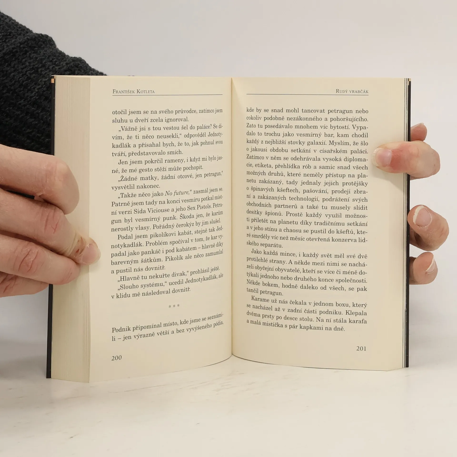 Vesmír je kruté místo. To poznala posádka lodi Kraksna v den, kdy Zemi obsadili mimozemšťané. I když se jí povedlo agresivní rase enlilů dostat ze spárů a uhájit si svobodu, aby si ji udržela, musela začít pracovat pro vesmírnou mafii. Teď ale kapitán Moravec, poručík Vojcechovský, technik Vodička, profesorka Krasiński, kuchař Giuseppe i tajemná Amanda dostávají příležitost se s enlily znovu utkat. Planeta tisíců světel je novým terčem jejich invaze a mafie je posílá právě tam. Ideální práce pro kapitána Bouchače a lorda Mrdáka. Tedy pokud by na planetu nemířili nejlepší špioni ze všech soupeřících civilizací a mezi nimi i ta, které se říká Rudý vrabčák... Vítejte v sérii Legie – světě Františka Kotlety a Kristýny Sněgoňové, space opeře temné, akční i zábavné, jak jen to chladný vesmír dovolí.