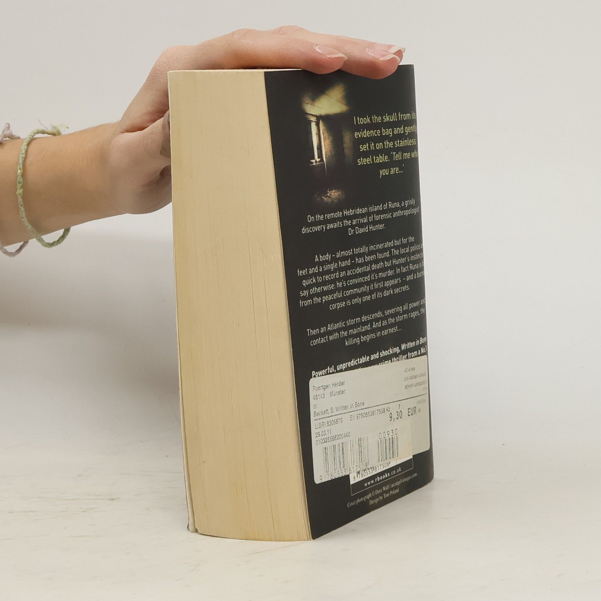 Detective and mystery stories. Forensic anthropologist Dr David Hunter should be at home in London with the woman he loves. Instead, as a favour to a beleaguered colleague, he's on the remote Hebridean island of Runa to inspect a grisly discovery.
